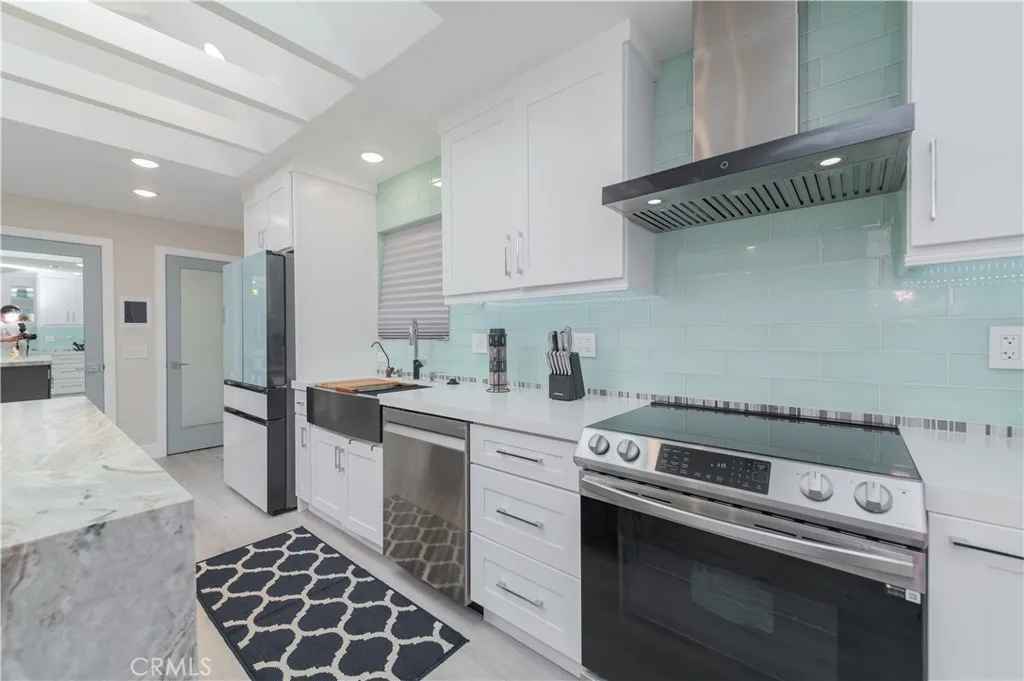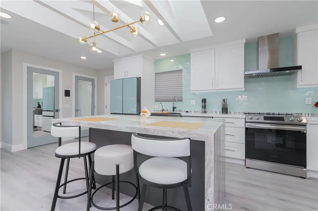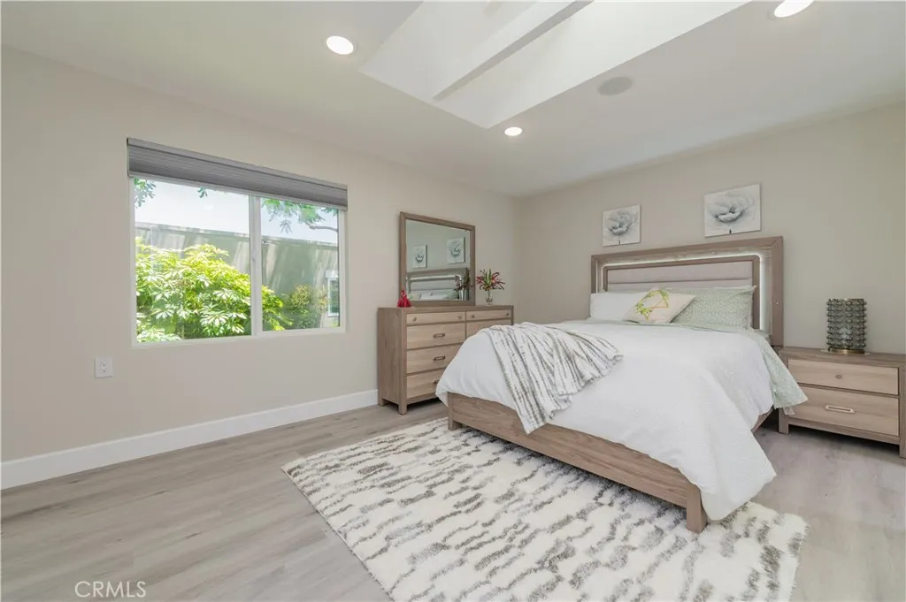 A one-of-a kind, custom-designed masterpiece, this home has been completely reimagined by a renowned architectural design team designed to meet the demands of modern living. This beautiful single story home is located in the desirable 55+ senior community of Laguna Woods Village. The home is flooded in natural light from multiple remote-controlled skylights throughout. Features include: A living room with stunning LED Fireplace beneath the TV and a Sound console system with Ceiling Speakers in every room. Elegant open floor plan gourmet kitchen with a Island matching light green Backsplash, high-quality cabinets, and top-of-the line stainless steel Appliances. Both the Master and Guest Rooms suit feature walk-in Closets. A Dining Room with a lovely setting, plus an additional Office Room with modern furnishings and light fixtures and A Half Bath for your Guest. New Waterproof Flooring throughout. New Washer and Dryer. New Central AC and Heating System, Double-Pane Windows. New Entrance Gate and Front Doors. This is a special Designer Home. You must come and see this magnificent home!