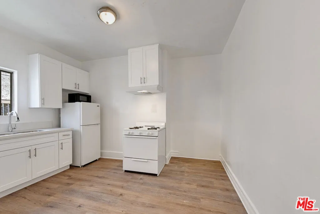 This bright unit features wood-style floors, fresh white walls, and a sleek kitchen with gas stove and white cabinetry. Enjoy a tiled bathroom, ample closet space, and secured gated entry.