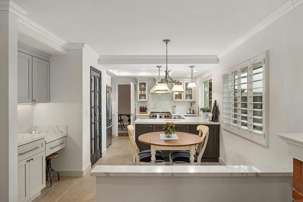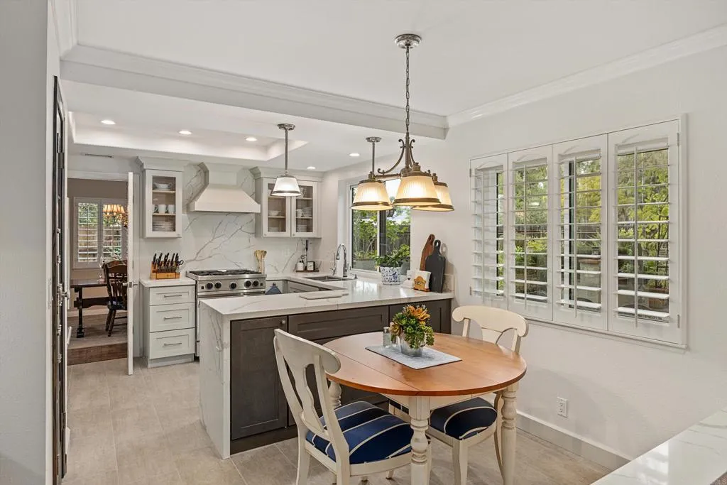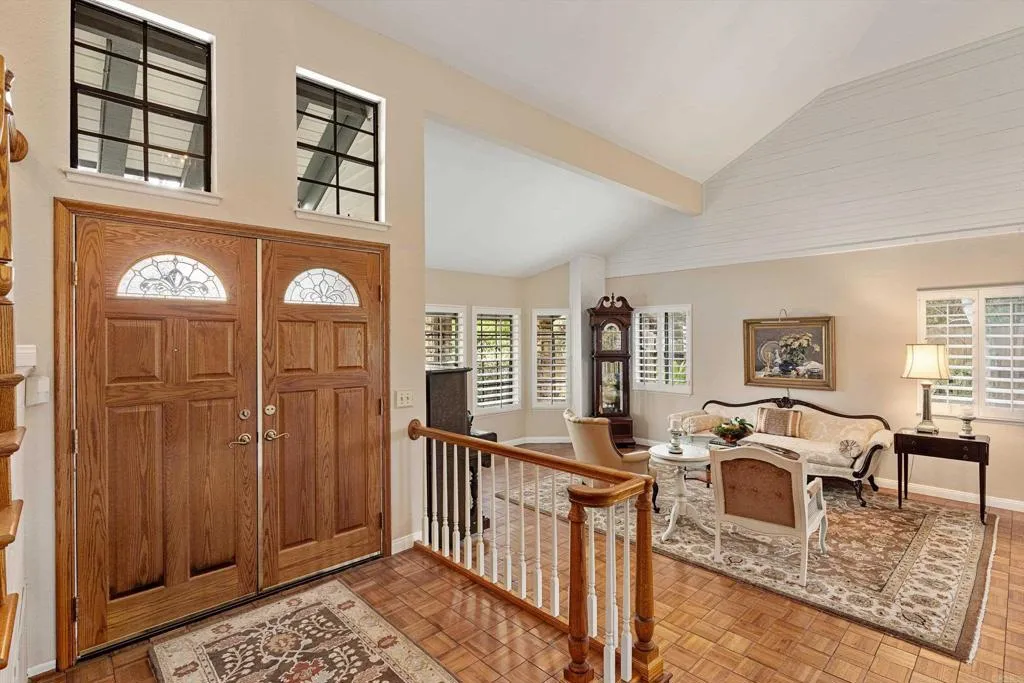 Welcome to this meticulously maintained, beautifully appointed home in a highly desired Citracado neighborhood of Southwest Escondido. Set on a private, serene park-like, .28 acre lot, the interior of this 4 bdrm/3ba 2363sf home draws instant attention with the eye-catching luxury of its impressive down stairs living areas. Beautiful parquet, genuine wood, flooring adorns the spacious sun-splashed living room, compliments of a large, beautiful bay window sporting high-end wooden shutters. A cozy fireplace embraces the generous, comfortable sitting area, adding warmth to those chilly, after-work evenings. Adjacently located is a welcoming dining area with easy access to the recently remodeled kitchen, which boasts quartz countertops, smartly matching backsplash, new appliances, attractive tile flooring, and a well-placed kitchenette area granting easy access to the family room/den; this haven also includes a second fireplace offering another escape to enjoy a warm, cozy fire on those cooler evenings, or an ideal gathering spot for those special social occasions. Glass sliding doors allow for easy access to the outdoor patio and dining areas and further out, on to the "vacationland" back yard - the entire downstairs living areas share a unified theme of impressive trim crown molding, high-end wooden shutters and parquet wood flooring. Additional features on this first floor are a private half bath/powder room, a spacious utility room, and access to the garage, facilitating transport of groceries to the kitchen! The upper level boasts four bedrooms, highlighted by the primary bedroom located privately at one end of the hall/walkway - it is richly accented with a luxurious, recently renovated primary bathroom showing off its sparkling new quartz countertop accompanied by a roomy, sleek, color-coordinated shower! Another special attraction is the main guest bedroom with its double-veiled window dressing allowing filtered levels of light. One of the bedrooms is presently set up as an office with a birds eye view of the flora and fauna-filled back yard/pool area. The welcoming front yard curb appeal teases a walk into the back yard, opening up into an oasis of tranquility and peace - and much summertime fun! Well chosen greenery surrounds the back yard pool and spa, a choice of sitting areas, and the patio/outdoor dining area! An added feature of value includes a leased solar system ( installed 2 years ago) with a back up battery. This home offers all the amenities needed to enjoy the best of the envied SoCal indoor/outdoor lifestyle. A quick check of the map reveals that this location is ideal to freeway access, major tourist attractions, schools, shopping, the Lake Hodges preserve and local parks! Don't delay, make this your new home today!