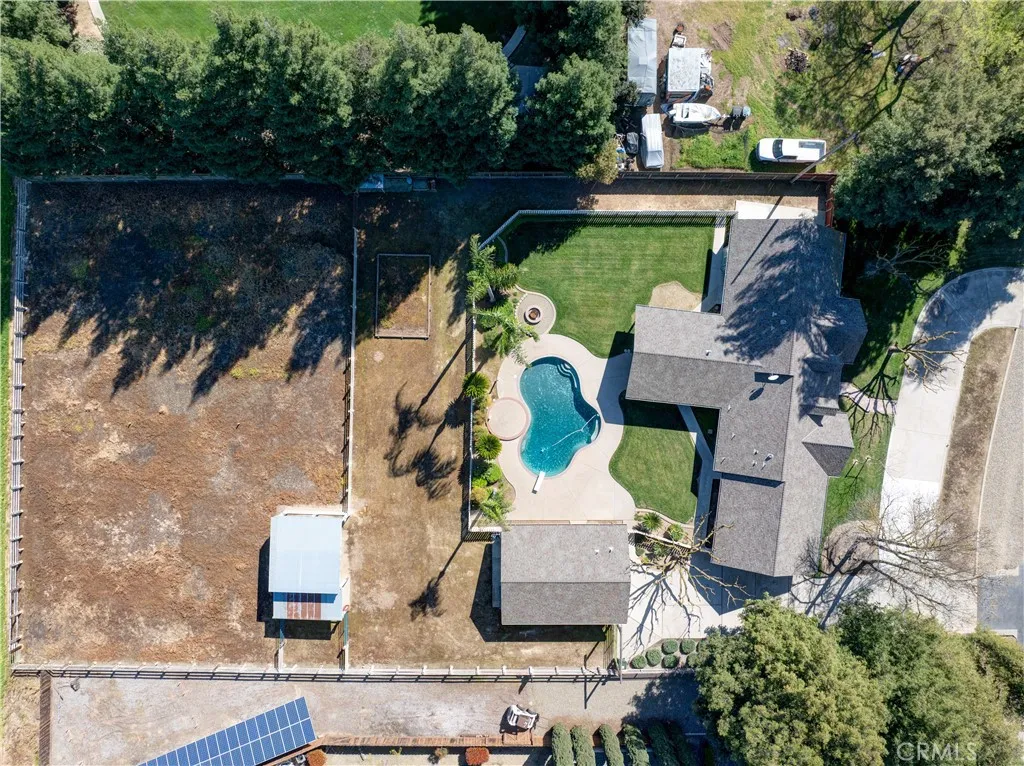 Beautifully maintained 3 bedroom, 2 1/2 bathroom home offering 2,185 sq. ft. of living space on a fully usable 1-acre lot in the desirable McSwain area of Atwater. The spacious open family room features a cozy pellet stove and sliding glass doors leading to a large covered patio, perfect for entertaining while overlooking the sparkling built-in pool and expansive backyard. The kitchen includes tile countertops, double ovens, electric cooktop, breakfast bar and ample prep space. Home features include new carpet, skylight for natural light, and a whole house fan for energy efficiency. Formal dining area plus indoor laundry room with cabinets and sink. Convenient half bath located off laundry room. Attached 2-car garage plus a detached 2-car workshop with full bathroom offer excellent storage and workspace options. Property includes designated areas for livestock and gardening, possible RV access, and usable acre ideal for country living with room to grow.