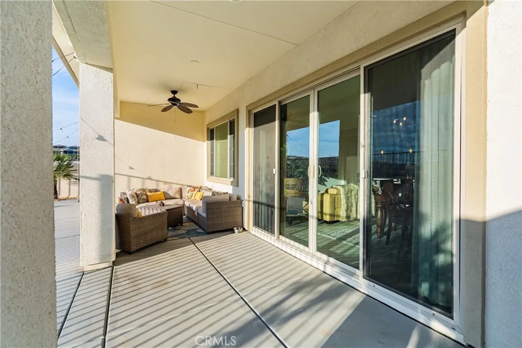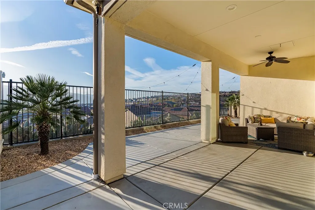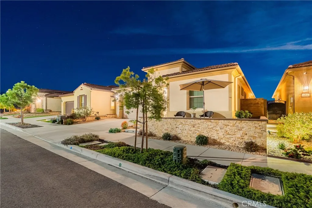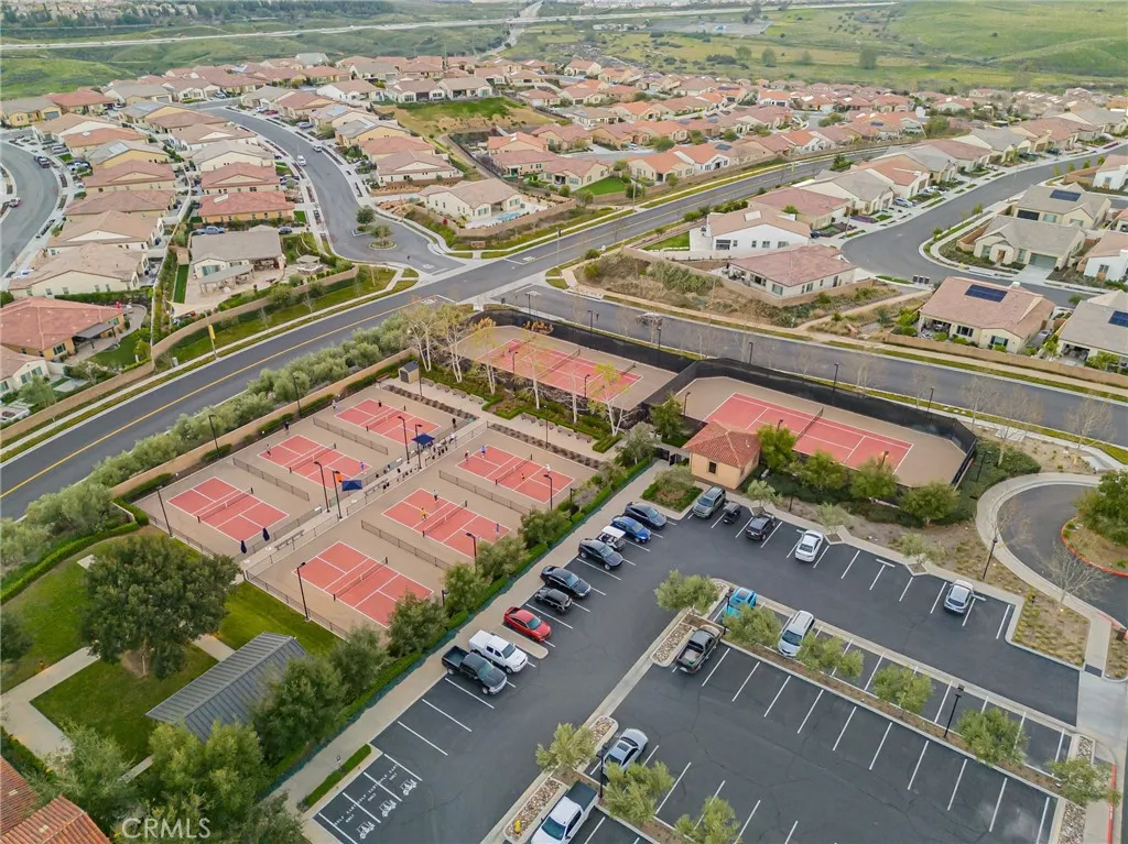 RESORT STYLE 55+ GATED COMMUNITY - SINGLE STORY - PREMIUM LOT - PANORAMIC VIEWS - PAID SOLAR - HIGHLY UPGRADED!! Welcome to the pinnacle of refined 55+ living within the prestigious Terramor community. It can come FULLY FURNISHED so you can just move right in!! This exceptional single story residence offers over 1900 ft.² of thoughtfully designed living space, featuring three bedrooms and two baths, ideally positioned on a premium lot with sweeping panoramic mountain vistas and sparkling city lights below. From the moment you arrive, the elevated front terrace and new glass entry door set a tone of understated sophistication. Inside, elegant porcelain tile flows seamlessly throughout, complemented by custom plantation shutters and a beautifully finished ceiling detail in the entryway. The heart of the home is a true Chef’s Kitchen, featuring a large center island with counter seating, stainless steel appliances, custom stainless hood, a 5 burner gas range, double ovens, reverse osmosis system, additional cabinetry w/ sleek hardware and a large walk-in pantry. Retreat to the primary suite’s master bath, featuring the luxury tub + shower upgrade for a spa-like experience with a large walk-in closet. The living space expands through extra-large sliding doors into a stunning California Room, capturing more of those breathtaking VIEWS and also equipped w/ three massive electric sunscreens—perfect for year-round indoor-outdoor entertaining. Smart and functional upgrades include electric interior shades, 9 fully OWNED solar panels, soft water system, tankless water heater, a finished garage with epoxy flooring, EV charging station and extra storage racks. Storage is plentiful with custom shelving in the guest and office closets plus a fully upgraded laundry room with sink and cabinets. Beyond your front door, enjoy world-class amenities including two clubhouses; one for 55+ and the other for families, indoor/outdoor pools, pickleball, tennis, a fitness center and all of this is surrounded by miles of scenic trails. Quick access to all major shopping, restaurants, cinemas, bowling, The Shops @ Dos Lagos as well as the 15 & 91 freeways. Come experience where luxury and convenience finally meet!