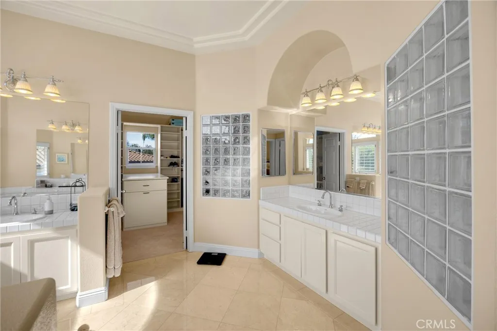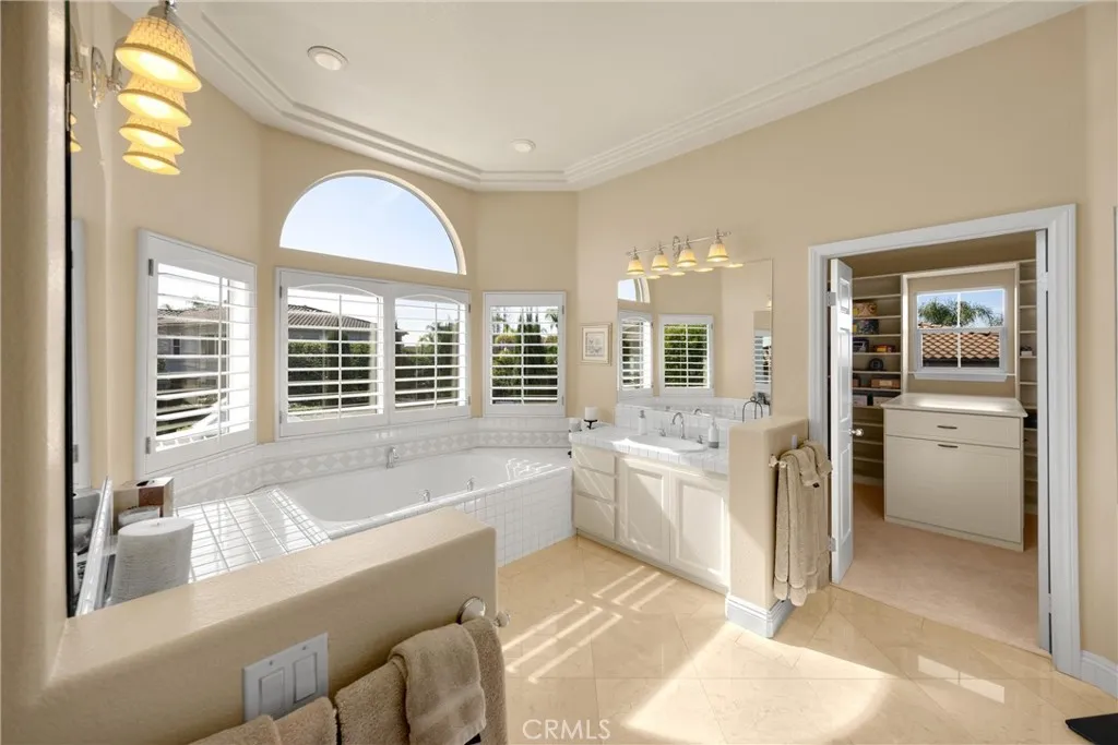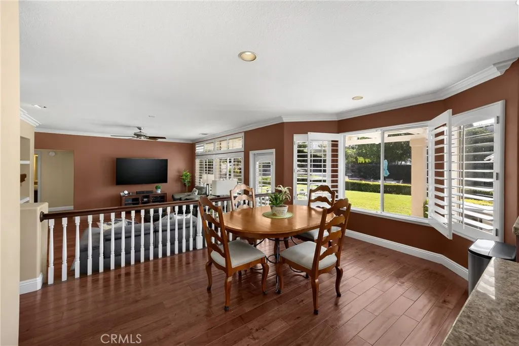 Stunning La Verne Heights home with views, comfort, and luxury! This home welcomes you thru leaded glass front doors and into the home's grand entryway with magnificent hardwood floors. The formal living room features patterned fabric carpet, custom window drapes, fireplace, and crown moldings on 10 foot ceilings. The formal dining room with mirrored wall, patterned fabric carpet, vaulted ceilings with crown molding, recessed lighting, and custom window drapes. The hardwood floors carry into the spacious kitchen with stainless steel appliances, granite counters, prep sink in island, recessed lights, and several windows to provide substantial natural light and views of the pool & yard. The kitchen is open to the down-level family room featuring wood floors, crown molding, window shutters, fireplace, and door leading to the outdoor patio. Main level secondary bedroom is complete with patterned carpet, window shutters, crown molding, and en suite bathroom with walk in shower and doorway to the side yard. Finally the laundry room with sink and powder room complete the main level. The curved staircase takes us to the second level where the large den/loft, 2 large guest bedrooms, guest full bath with dual sinks, and primary suite are located. The primary bedroom features double entry doors, a sitting room/office, fireplace, window shutters, patterned carpet, ceiling fans, window drapes, and double doors to the primary bathroom. This is where we have dual vanities, makeup counter, separate tub and walk-in shower, crown molding, window shutters, and huge walk-in closet. The rear yard features include: stamped concrete deck throughout the back yard, solid patio cover with TV mount, ceiling fans, BBQ cooking island with granite top and bar, gazebo, 2 grass yards, sparkling saltwater PebbleTec pool, waterfall edge, spa, and removeable pool safety fence. Finally the 3 car garage is complete with tons of storage cabinet space, overhead storage racks, and expoxy flooring.