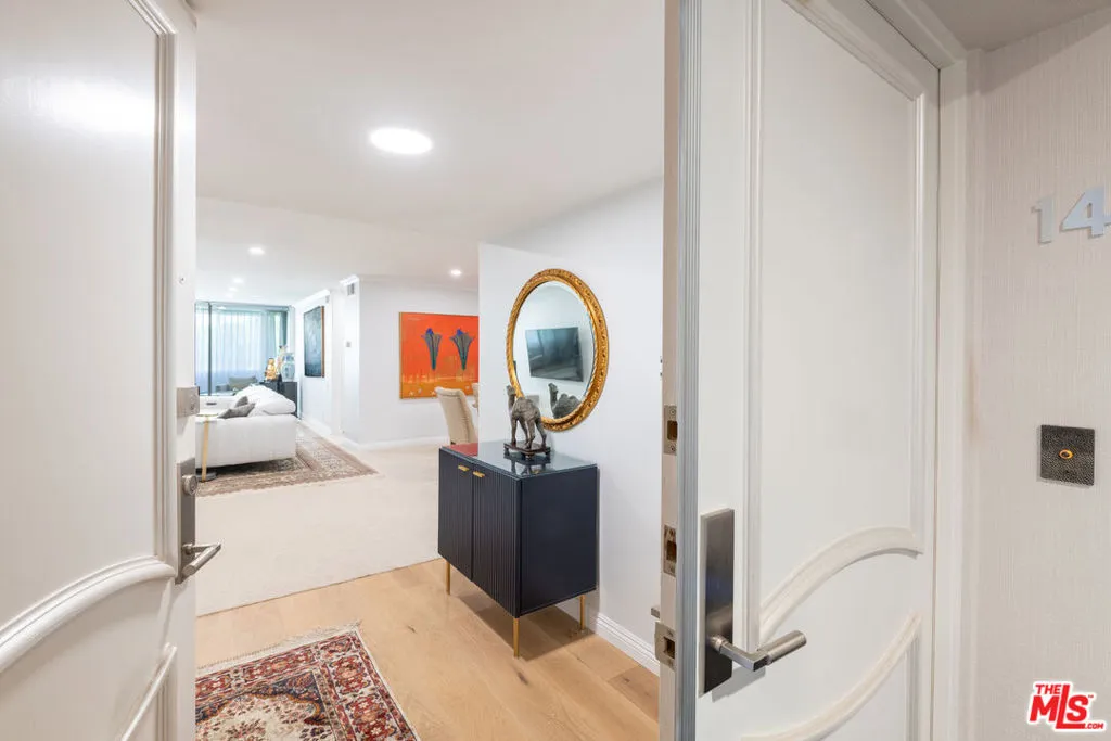 Spacious 2-bedroom, 2-bath residence thoughtfully remodeled from top to bottom with exceptional attention to detail and no expense spared. The brand-new kitchen showcases striking quartzite countertops, custom lacquer cabinetry, top-of-the-line stainless steel appliances, and a separate laundry/storage room. The kitchen flows seamlessly into a generous dining area and expansive living room featuring a gas fireplace, creating an ideal setting for both everyday living and entertaining. Sliding doors open to an enclosed patio, which is also accessible from the guest bedroomperfect for indoor-outdoor flexibility. The oversized primary suite offers a well-appointed bath with dual vanities, a walk-in closet, a linen closet, and a private balcony retreat. Additional highlights include gated and secure underground parking with two side-by-side spaces, abundant storage, and the rare benefit of no unit above for enhanced privacy and quiet enjoyment. Ideally located just blocks from award-winning Fairburn Avenue Elementary School, a Blue Ribbonrecognized primary school, and only minutes from UCLA, Brentwood, Beverly Hills, and the Century City Mall, with premier shopping, dining, and entertainment.