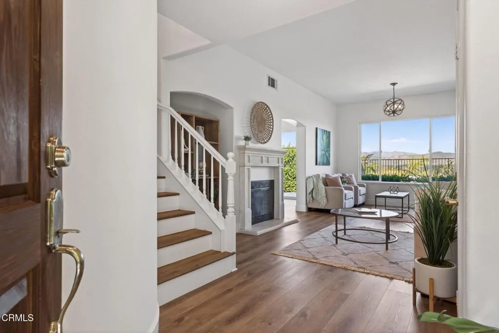 Views take center stage in this exceptional home, where a premier location meets sweeping mountain vistas and glowing city lights, a rare and striking combination that sets this residence apart. Welcome to 931 Corte Augusta, ideally positioned within the prestigious, gated Golf Villa II community within Spanish Hills. This residence is one of only a select few to offer breathtaking views, enjoyed from all main living areas, one of the upstairs bedrooms, and the inviting backyard--perfect for entertaining family and friends while taking in the scenery. A second upstairs bedroom also has the potential to capture similar views with the replacement of two smaller windows with a larger picture window. The home offers 3 bedrooms, 2.5 bathrooms, and 1,623 square feet of thoughtfully designed living space. The first floor features a versatile layout ideal for both everyday living and entertaining. Highlights include a cozy family room centered around a fireplace with a custom mantel, and hearth, a flexible space that can serve as a formal dining area or sitting room, and an inviting kitchen with a generously sized breakfast nook for casual meals. High-end luxury vinyl plank flooring flows throughout the first floor, staircase, and upstairs hallways, while all three bedrooms are carpeted. The primary suite provides a private retreat, separated from the other bedrooms, and includes a walk-in closet and a private balcony. The recently remodeled primary bathroom features a custom vanity with quartzite countertops, dual sinks, illuminated mirrors, a spacious shower, and a private water closet. The secondary bathroom has also been remodeled, featuring custom tile work, a large soaking tub, and elegant matte-gold plumbing fixtures. Additional features include central air conditioning, dual-pane vinyl windows, a private laundry room, and a two car garage for convenience and comfort. The $480 monthly HOA dues provides gated security and access to desirable amenities including a clubhouse, pool, spa, and RV parking. The community is also within walking distance of the renowned Spanish Hills Country Club, offering multiple membership options with access to golf, tennis, pickleball, swimming, and a highly rated restaurant. The home is also ideally located near the Camarillo Premium Outlets and the Camarillo Airport, with quick access to both the 101 and 118 freeways, perfect for commuters or anyone who values convenience and connectivity.