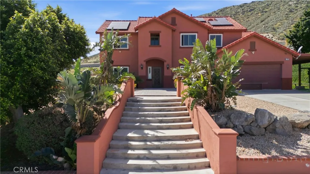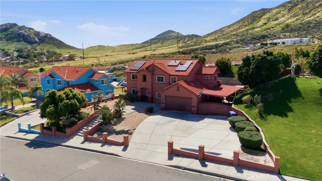 **NEW IMPROVED PRICE!**Welcome to this beautiful Mediterranean-style home at 11970 Walnut St. in the heart of Bloomington. Built in 2004, this spacious 2,738 sq. ft. residence sits on a nearly half-acre lot and offers a rare combination of mountain views, modern comfort, and expansive outdoor space. With 5 bedrooms and 4 full bathrooms, the thoughtfully designed layout is ideal for multigenerational living. The main level features a bright living room filled with natural light, a private primary suite with granite countertops, two additional bedrooms with a shared dual-sink bathroom, and an indoor laundry room with direct access to the attached two-car garage. Upstairs offers an open-concept kitchen with granite countertops and abundant cabinetry that flows into a spacious family and dining area with tile flooring—perfect for everyday living and entertaining. Two oversized upstairs bedrooms each include their own private full bathroom, providing excellent separation for next-gen living arrangements. Step outside to a massive backyard with a large covered patio and terraced access to an elevated portion of the lot with sweeping mountain and city views—offering potential for an ADU, outdoor retreat, or additional entertainment space. The home also features solar, helping improve energy efficiency and reduce utility costs. Additional highlights include rear gated access, an extended driveway, and RV parking. Don’t miss this unique opportunity to own a spacious home with incredible potential—schedule your private showing today.