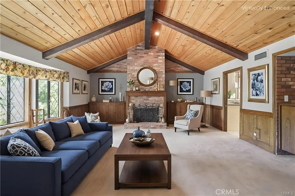 A stunning 4,050 sq ft. 4 Bedroom, 5 Bath home, that sits on a large lush ½ Acre lot at the end of a quiet Cul-de-sac in the highly coveted Roy Rogers Estates. Tucked away in the foothills of Chatsworth, close to awarding winning schools, Popular restaurants, entertaining and shopping. Freeway access is also close by. This tranquil Oasis is ideal for raising families and entertaining guests alike. Open the tall beautifully stained Double doors to a large foyer entry where you will find high ceilings and beautiful wood floors that lead you into a thoughtfully laid out floor plan. There is a chef's kitchen with lots of windows and natural light that features newer top of the line appliances and eating area, perfect for family meals. The kitchen opens up to an exquisite formal dining room. There is a huge cozy family room with a wet bar, gas fireplace, vaulted wood ceilings and large Bay window to fill the room with sunlight, step down to the formal living room with French doors, balcony, gas fireplace to entertain your guests. Just across the entry is a Wood Panel Parlor room with beamed ceilings, perfect for a grand piano and sitting area. The master bedroom is oversized with French doors opening up to your private balcony. There’s good size dressing area with a cedar closet and spa style bathroom with huge built-in Soaking tub and large glass shower. Bedroom #2 opens to the backyard & hillside it features a large closet and full bath. Bedroom #3 is light and bright with large closets, double sinks and full bath. Bedroom #4 or the “Loft” has its own private staircase that leads to a larger room with wood floors, walk in closet and three quarters bath. This room is versatile and could be anything your heart desires: theater, bonus room, etc. The 5th bathroom is a guest powder room perfectly located in the hallway between the Dining Room and the wet bar. The home also has a three-car garage with ample storage area. The lush yard is peaceful & private, with mature trees, lots of plants and decking, perfect for barbecues and family entertaining. There is an in-ground spa for relaxing. This home is “one-of-a-kind” offering, country charm and classic elegance with modern appliances making it ideal for families and entertaining alike, call and make your appointment to see before it's gone