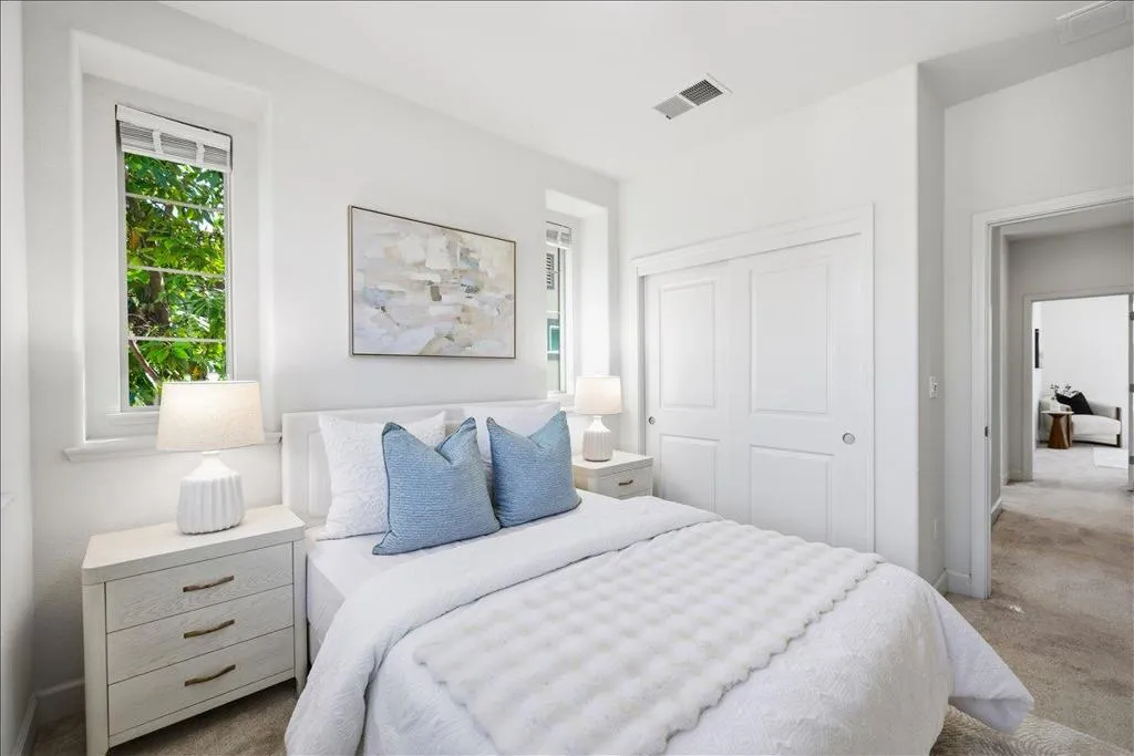 Delightful townhouse beside Central Park. End unit with 23 windows; natural light floods in from all angles. Open floor plan on the second level, complete with a spacious modern design kitchen boasting a huge island and a walk-in pantry. Lots of storage. The adjacent living room seamlessly extends onto a balcony, perfect for enjoying California sunshine. Master bedroom suite with a double sink vanity and a spacious walk-in closet. The second suite also located on the third floor. East-facing windows make the second bedroom bright. Descending to the first floor, you'll find the third bedroom with a private bathroom and a walk-in closet, offering privacy and versatility. Additional features include outlet for an EV charger, side by side garage, heated swimming pool, spa, BBQ area, and playground in the community. And with its prime location, you're just moments away from major tech companies like Apple, Nvidia, Google, Amazon. Walking distance to META Shuttle stop. Close to private schools: Stratford, Challenger, Basis, Monticello. Walking distance to Central Park, Library, Magical Bridge Playground, tennis courts, basketball courts, soccer fields, Olympic-size swimming club, community center, Safeway, restaurants, stores. HOA also covers the garbage fee.