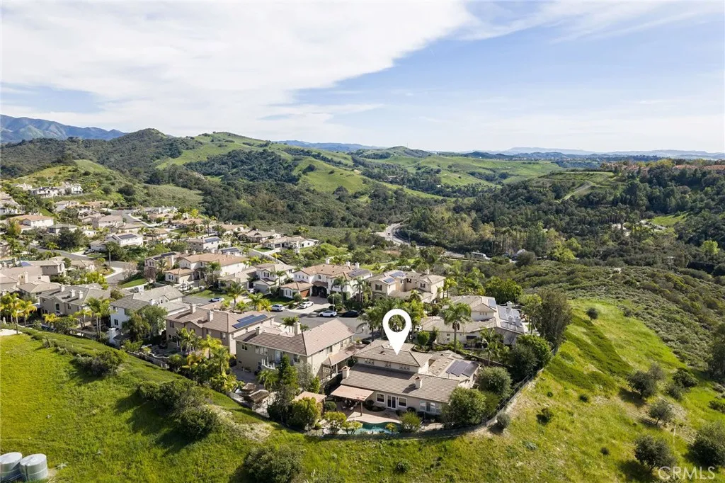 An entertainer’s dream, privately tucked away in the peaceful setting of Silverado Canyon.. Located at the end of a quiet cul-de-sac in the prestigious and rarely available Santiago Canyon Estates, this stunning 4-bedroom, 3.5-bath residence offers approximately 3,350 sq ft on a nearly 16,000 sq ft private lot with no neighbors behind and sweeping Saddleback Mountain views. This hidden-gem neighborhood is known for its peaceful, serene setting while still offering convenient access to nearby amenities. Designed for effortless indoor-outdoor living, the backyard is both private and inviting with a saltwater pool and spa featuring a Baja step and waterfall, wraparound yard, personal chipping and putting green, lawn, mature landscaping with fruit trees and hydrangeas, fountains, covered patio, and gazebo with built-in BBQ — ideal for both entertaining and everyday enjoyment. A gated courtyard with fountain welcomes you into a dramatic foyer, formal living and dining rooms and scenic hillside views that create an immediate sense of warmth and elegance. The gourmet kitchen features a center island, breakfast bar, casual dining area, upgraded appliances, and walk-in pantry, opening to a comfortable family room with fireplace, surround sound, and built-in media storage — thoughtfully designed for both relaxed family living and elevated entertaining. The main-floor primary suite offers tranquil canyon views, an oversized walk-in closet, and spa-inspired bath. A separate main-level guest suite includes a Murphy bed, private courtyard and backyard access, and its own garage — ideal for guests, multigenerational living, or a private workspace. Upstairs features new flooring, a versatile loft, and two secondary bedrooms connected by a Jack & Jill bath. Complete with a fully owned solar system.