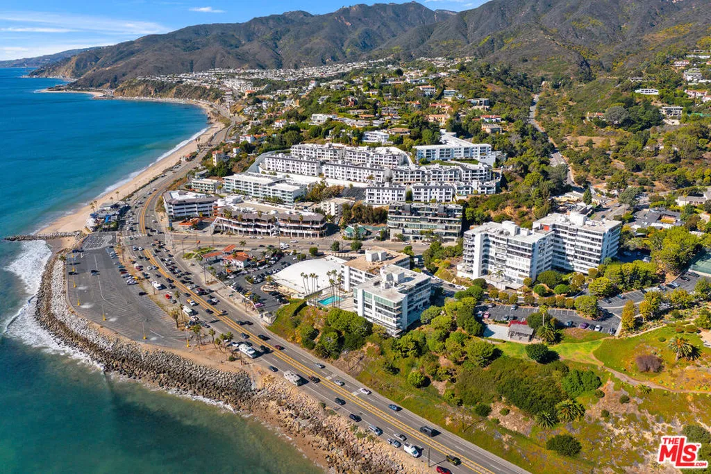 Incomparable sunset vistas! Enter a beautifully updated 3-bedroom, 3-bath ocean view residence nestled within the exclusive guard gated Edgewater Towers community in Pacific Palisades. Perched on the 6th floor corner, this residence welcomes abundant natural light throughout with expansive picture windows that frame breathtaking ocean, city and mountain views, setting a serene and luxurious ambiance. Inside features elegant hardwood flooring and a designer kitchen equipped with stainless steel Viking appliances and an extended island, perfect for culinary artistry. The remodeled bathrooms offer a spa-like retreat, complemented by the convenience of an in-unit washer and dryer. The living room, featuring an inviting decorative fireplace and a mirrored accent wall, is thoughtfully designed to amplify the captivating ocean views; the adjacent dining room area is highlighted with expansive windows and more views. Community amenities elevate everyday living with an ocean-facing swimming pool, spa, gym, tennis and sport courts, hiking trails sprawling across approximately 5 acres, a delightful ocean-view gazebo, BBQ/picnic area, EV charging and guest parking. The unit includes two private storage units and two assigned parking spaces. Ideally situated just across Pacific Coast Hwy to Sunset Beach, near Palisades Village, Will Rogers State Beach, Temescal Canyon Park, Los Leones Trailhead, and the Getty Villa, this residence offers seamless access to famed beaches and scenic hiking trails, embodying a lifestyle of refined coastal luxury.