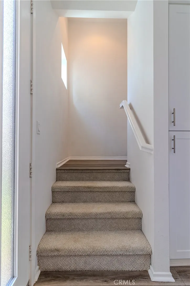 Welcome to this gorgeous and modern, move-in-ready 3-bedroom, 3.5-bath townhome located in the highly desirable Boardwalk community in Corona. Spanning three levels, this well-designed home offers an ideal balance of comfort, functionality, and lifestyle. The first floor features a private office with a half bath, ideal for remote work or a flex space as well as a full size two-car garage with automatic opener, Epoxy Flooring, 220v EV charger and lots of overhead storage shelving as well as a Full house On-Demand gas water heater.. The main living level offers an open-concept layout filled with lots of natural light and a contemporary kitchen with quartz countertops, ample cabinetry, and a full suite of stainless steel appliances, including a KitchenAid refrigerator, dishwasher, microwave, and gas range. The adjacent dining and living areas flow seamlessly as a great room to a private balcony, perfect for relaxing, sipping your morning coffee or evening wine (we are not judging). The top level includes a spacious primary suite with large walk-in closet, dual vanities, and a dedicated shower. Two additional bedrooms share a full hallway bathroom with a tub/shower combination with very nice chrome fixtures. Thoughtful upgrades throughout include laminate wood flooring, central air and heat, in-unit washer and dryer, and a direct-access two-car garage with EV charging hookup. The Office on bottom floor can easily be converted to a 4th bedroom. Residents of the Boardwalk community enjoy access to resort-style amenities, including a pool, spa, a children's playground and barbecue areas, all within a beautifully maintained, gated setting. Conveniently located near shopping, dining, entertainment, Metrolink, and major freeways, this home offers a low-maintenance lifestyle in one of Corona's most sought-after neighborhoods.