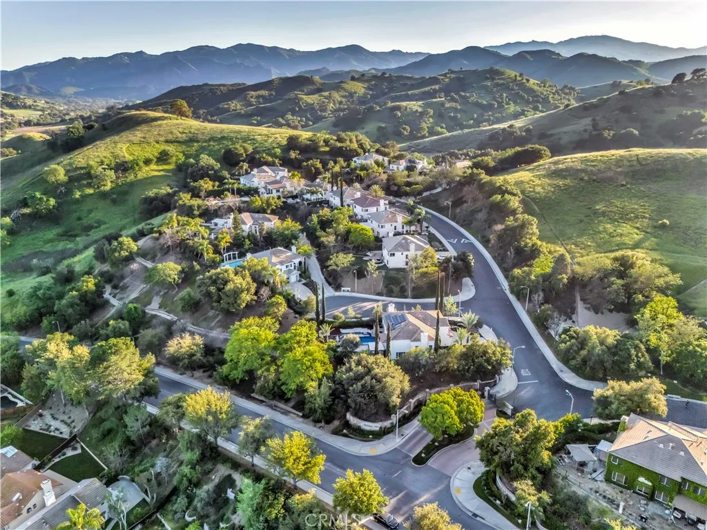 This stunning home showcases sweeping views and an unbeatable location in Calabasas. Situated within the exclusive gated community of Calabasas View, this beautifully appointed 5-bedroom, 4½-bath home offers approximately 3,400 square feet of light-filled living space and 20' vaulted ceilings. A welcoming foyer leads into the formal living room, where a fireplace anchors the space beneath soaring vaulted ceilings, framed by windows that bathe the room in natural light. The expansive upgraded kitchen features quartzite countertops and opens seamlessly to the family room, while a formal dining room provides the perfect setting for special occasions. Ideal for outdoor gatherings, the backyard offers incredible unobstructed views of the hills and valley, a covered patio, and an artificial grass area perfect for play or pets. A downstairs bedroom with a private full bath makes an ideal guest suite or multi-generational living. Upstairs includes a versatile landing—perfect for an extra office or play space. Retreat to the large, private primary bedroom with a fireplace, an expansive upgraded en-suite bathroom, and a spacious walk-in closet. Upgrades include 2019 HVAC system/dual zone, 2024 Water Heater, 2024 Aluminum Patio Cover and designer window coverings. Nestled on a quiet cul-de-sac along a peaceful, tree-lined street, this home is located within the highly acclaimed Las Virgenes Unified School District. Enjoy easy access to the Valley or take a scenic 15-minute drive to the beaches of Malibu or Pepperdine. Surrounded by scenic parks, hiking and biking trails, the home is also just moments from the 101 Freeway, Erewhon Market, 4 miles to The Commons at Calabasas, and 6.5 miles to the Westlake Village Promenade. The Calabasas Community Center Gym is within walking distance. With breathtaking views, a prime location, and exceptional living spaces, this home truly offers the best of Southern California living.