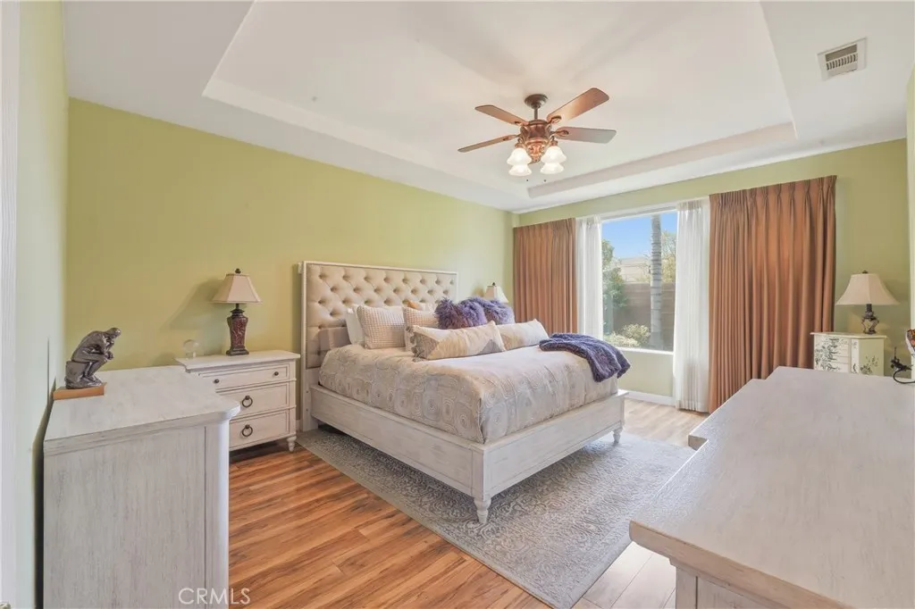 Welcome Home to refined luxury in Parklane — an exclusive all single-story within Heritage Lake in Menifee. Tucked away on a quiet cul-de-sac, this breathtaking residence blends elegance, comfort, and effortless sophistication. Meticulously maintained and beautifully upgraded, this immaculate single-story masterpiece is truly move-in ready. Designed with an expansive open-concept layout, the home offers 4 spacious bedrooms, 3.5 designer bathrooms, and a private office. The chef-inspired kitchen is the showpiece — featuring a massive statement island, gorgeous countertops, custom cabinet pull-outs, a charming breakfast nook, and elegant flooring that flows seamlessly throughout. Soaring 9-foot ceilings, dramatic interior archways, and a private atrium courtyard create a fresh, modern ambiance with architectural flair. The luxurious primary suite is privately positioned in its own wing, delivering a true retreat experience. Indulge in the spa-like bathroom complete with a deep soaking tub, dual vanities, a glamorous makeup station, a spacious walk-in shower, and an oversized walk-in closet designed to impress. At the heart of the home, the expansive great room exudes warmth and style with its oversized family room and inviting fireplace. Formal living and dining spaces offer flexibility for elegant entertaining, a game room, or a sophisticated lounge — all illuminated by an abundance of natural light pouring through large double-pane windows. Step outside to a beautifully landscaped, low-maintenance backyard designed for relaxation and effortless outdoor living. Living in Heritage Lake elevates your lifestyle with resort-caliber amenities — including multiple sport courts featuring basketball, soccer, and racket/tennis courts, a stunning clubhouse, a serene waterfront Jr. Olympic-sized pool, and a vibrant splash park. Whether hosting friends, staying active, or enjoying sunset walks by the lake, every day feels like a private retreat. This is more than a home. It’s a statement of luxury living in one of Menifee’s most desirable communities.