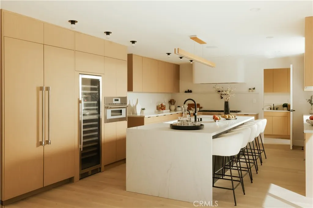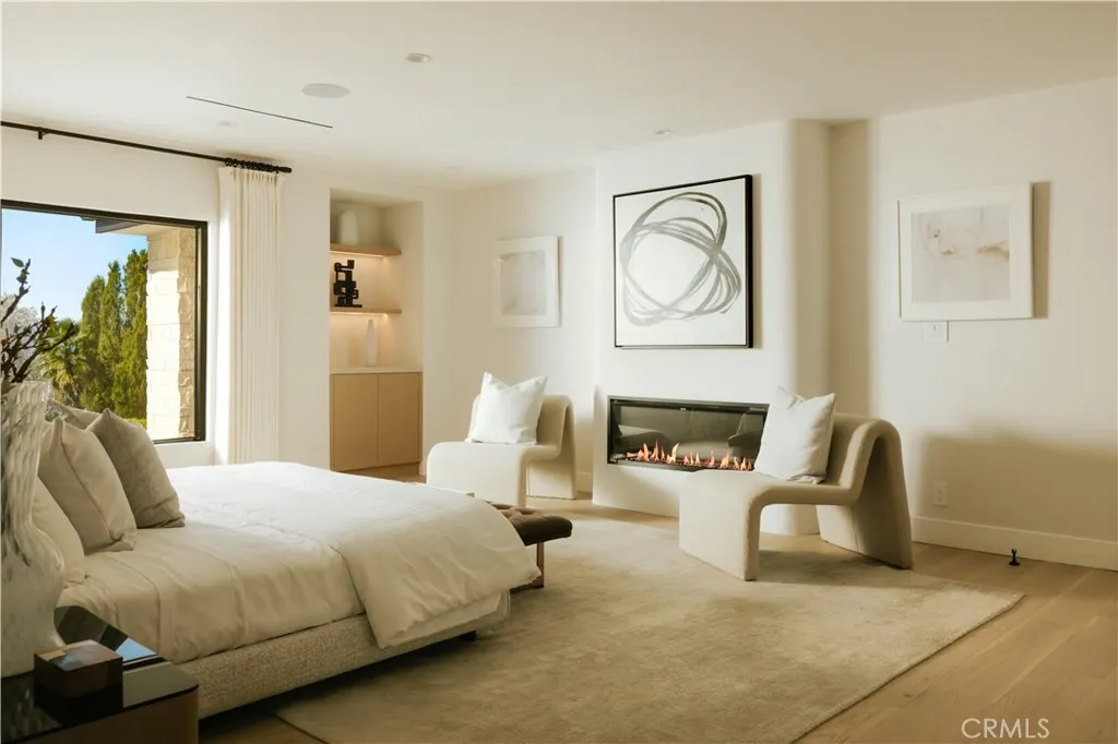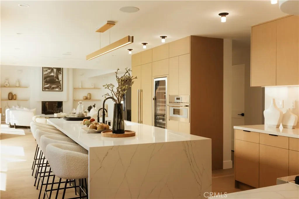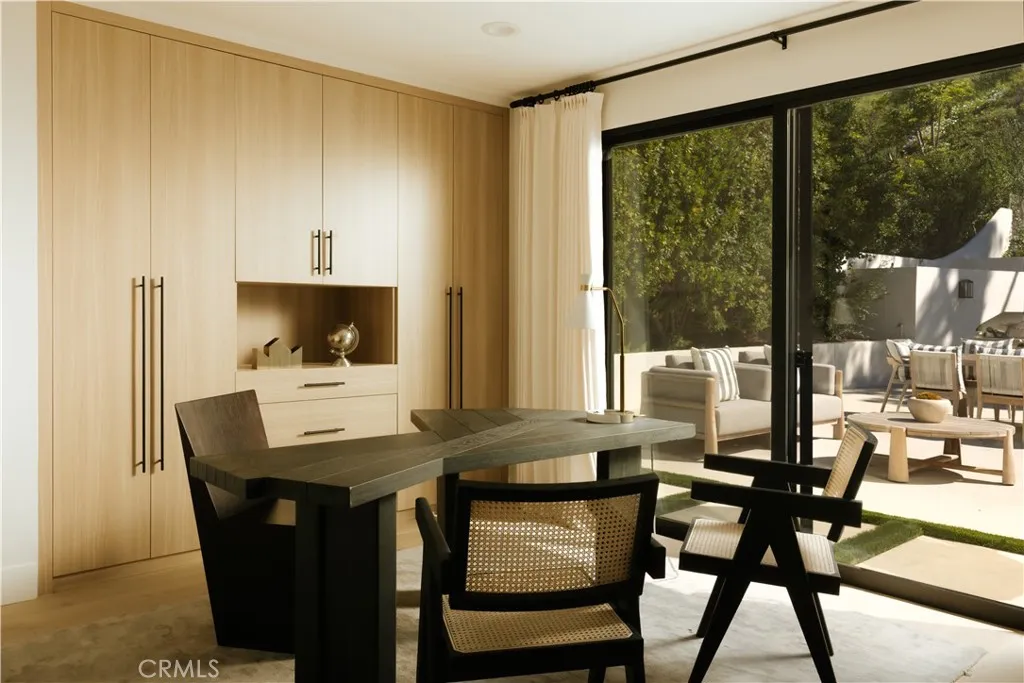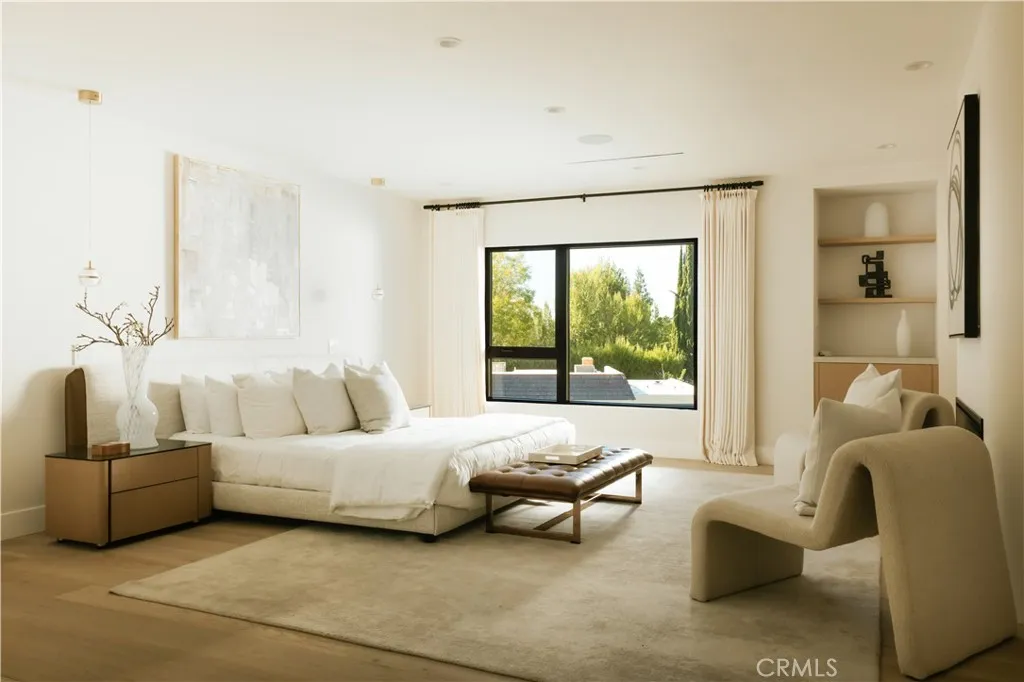 Situated in the coveted hills of Encino, this beautifully redesigned residence offers modern elegance, privacy, and sweeping views. Originally known as the iconic “Karate Kid House,” featured in the classic film The Karate Kid, the property carries a unique piece of Hollywood history while now showcasing a thoughtfully reimagined modern living experience. A welcoming entry introduces soaring ceilings, a striking staircase, and wide plank wood flooring that flows throughout the home. Generous living and entertaining spaces are framed by large windows that fill the interiors with natural light while capturing lush greenery and scenic hillside vistas. Living areas are anchored by sleek fireplaces, creating warm and inviting environments ideal for both everyday living and entertaining. The gourmet kitchen is thoughtfully designed with custom cabinetry, high end appliances, a large center island with seating, seamlessly opening to the surrounding living and dining spaces. Upstairs, a spacious recreation room with vaulted ceilings and exposed wood beams offers a versatile gathering space perfect for a media lounge, game room, or relaxed family living. The primary suite provides a peaceful retreat, featuring a spa inspired bathroom with a soaking tub, oversized shower, dual vanities, and an expansive walk-in closet. Designed for both entertaining and everyday enjoyment, the backyard offers a true resort like setting with a pool and spa, multiple lounge and dining areas, an outdoor kitchen and BBQ, and lush landscaping that extends up the hillside, creating a private outdoor environment with beautiful mountain and canyon views. Located just minutes from Ventura Boulevard’s premier dining, shopping, and entertainment, this Encino Hills property presents a rare opportunity to own a home that blends modern luxury, scenic views, privacy, and a piece of cinematic history in one of the Valley’s most sought after neighborhoods.
