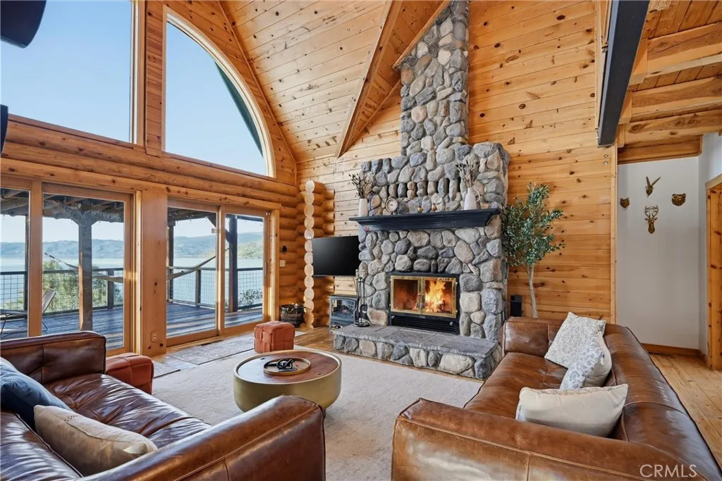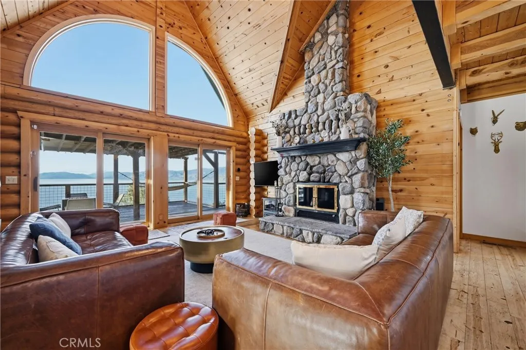 Tucked at the end of a quiet cul-de-sac, this exceptional 3± acre lakefront property offers privacy, sweeping views, and approximately 500 feet of Clear Lake frontage. Made up of three separate parcels, the property also provides lake access via the community boat ramp, making it an ideal setting for enjoying lake life. The home features 2 spacious bedrooms but lives like a 3-bedroom, along with 2.5 bathrooms, a large upstairs bonus room, and an open den, offering flexible living space for guests, work, or recreation. Nearly every room captures peaceful lake views, creating a tranquil atmosphere throughout the home. The main level showcases an inviting open-concept layout with a kitchen featuring resin countertops, updated lighting, a breakfast nook, and a walk-in pantry. The kitchen flows seamlessly into the living room with soaring ceilings and dramatic floor-to-ceiling windows, filling the space with natural light and leading directly to the attached deck—perfect for soaking in the scenery. The primary suite enjoys beautiful lake views and includes a private fireplace and ensuite full bathroom, creating a relaxing retreat. Upstairs you’ll find an additional bedroom, full bath, spacious bonus room, and open den area, offering plenty of room for guests or additional living space. Additional features include open parking and a carport at the metal storage building, providing convenient space for vehicles, boats, or lake gear. Whether you’re seeking a full-time residence, private lake getaway, or investment opportunity, this property offers it all. It is currently a well-established short-term vacation rental, with a proven track record of income. The turnkey rental business and online profile may be transferred to the new owner, offering an excellent opportunity for immediate revenue.