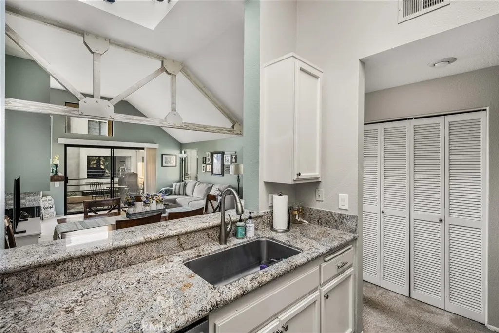 Welcome to your own private retreat in the highly desirable Villeurbanne community of Orange. This charming one-bedroom, one-bath condominium is ideally situated in one of the community’s most sought-after locations, surrounded by mature trees and tranquil greenbelts. Step inside to discover a bright and open floor plan featuring dramatic vaulted ceilings, oversized skylights that fill the home with natural light, and a cozy fireplace that serves as the centerpiece of the living room. The spacious dining area flows seamlessly from the kitchen and offers convenient bar-top seating, creating a comfortable space for both everyday living and entertaining. A private balcony extends the living space outdoors, perfect for al fresco dining, morning coffee, or simply relaxing while enjoying the peaceful, tree-lined surroundings. The generously sized bedroom is filled with natural light and offers ample closet space. Additional highlights include an inside laundry closet with full-size washer and dryer, adding convenience and functionality. Residents of Villeurbanne enjoy resort-style amenities including sparkling pools, relaxing spas, BBQ areas, and access to a private, reservable community clubhouse. Outdoor enthusiasts will appreciate the nearby walking paths, hiking trails, and close proximity to Peters Canyon Regional Park and Irvine Regional Park. Convenient freeway and toll road access make commuting easy. This home presents an incredible opportunity to enjoy peaceful hillside living in one of Orange’s most desirable communities.