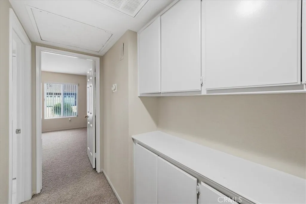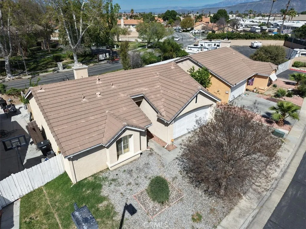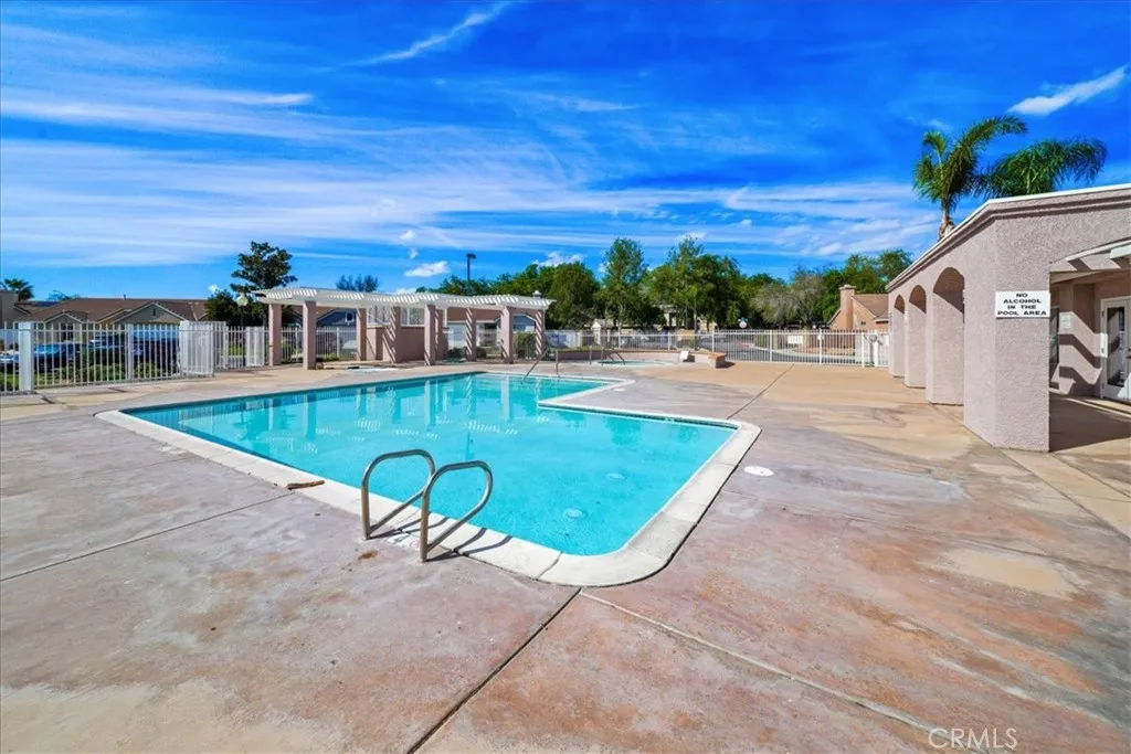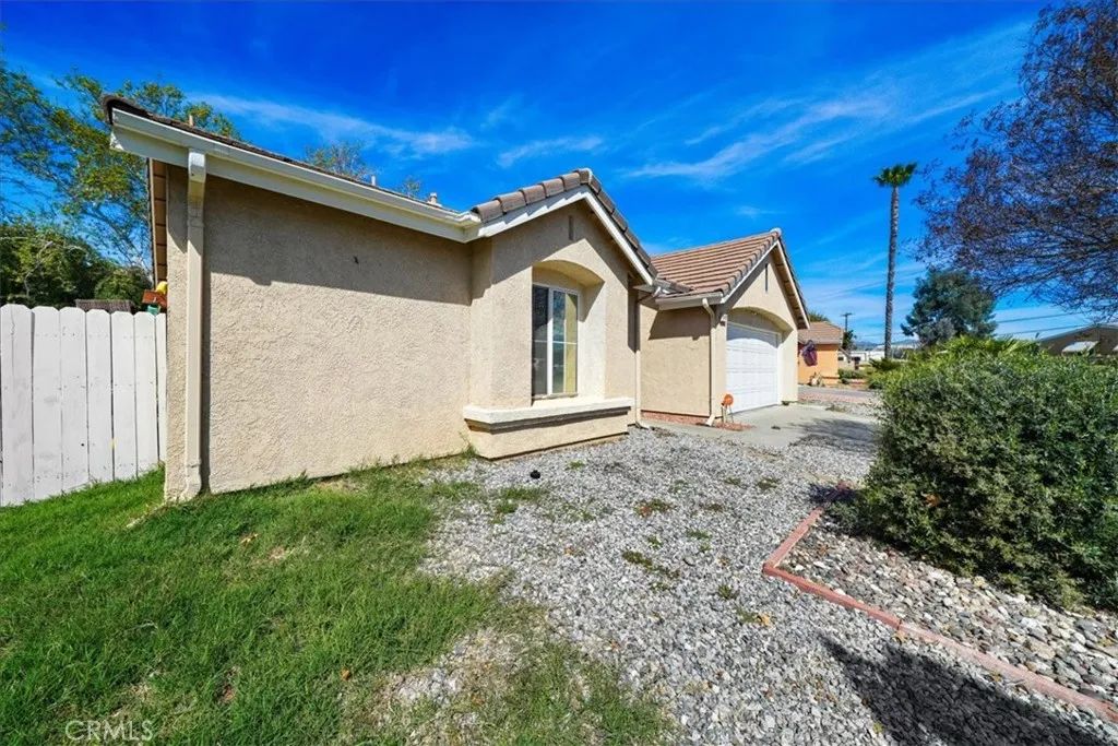 Welcome to 717 Balsam Way, a beautifully maintained single-story home nestled in the gated Laurel Park community in Hemet—an all-ages neighborhood offering resort-style amenities and convenient access to shopping, recreation, and entertainment. This thoughtfully designed home features 2 bedrooms and 2 bathrooms with 1,217 square feet of living space, including a spacious primary suite and a private junior suite, making it ideal for guests, extended family, or a home office. The home sits on a 4,792 square foot lot with attractive curb appeal highlighted by a wide driveway, mature shade tree, and easy-care landscaping. Inside, the open floor plan creates a bright and welcoming atmosphere. The entry opens to a light-filled family room with soaring ceilings and a tile fireplace with wood mantle. The living space flows seamlessly into the dining area with sliding glass doors leading to the backyard. The eat-in kitchen offers ample cabinetry, tile countertops, and a water filtration system under the sink. The spacious primary suite features vaulted ceilings, an upgraded ceiling fan, and a walk-in closet. The ensuite bathroom includes dual sinks, a soaking tub, and a separate walk-in shower. Down the hall is a generously sized junior suite with its own walk-in closet. Additional interior highlights include designer two-tone paint, Berber carpet flooring, custom window treatments, and an indoor laundry room with built-in cabinetry. Step outside to a spacious backyard with mature fruit trees, offering a wonderful opportunity to design your own outdoor retreat. Laurel Park residents enjoy gated security and community amenities including a pool, spa, clubhouse, and onsite RV parking available for approximately $25 per month. The location provides convenient access to shopping, dining, and entertainment including Soboba Casino Resort just minutes away. Outdoor enthusiasts will appreciate nearby Diamond Valley Lake Recreation Area. The home is also about 45 minutes to Palm Springs and approximately one hour to Desert Hills Premium Outlets.