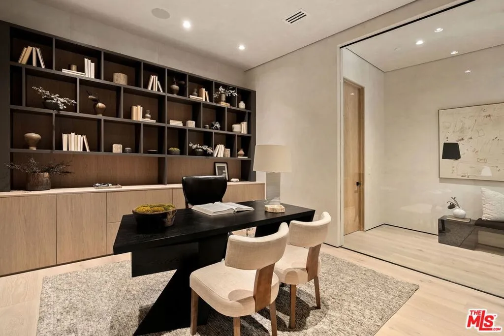 Built with a reverence for scale and serenity, 10386 Strathmore Drive stands as Holmby Hills' definitive new construction estate. Set on more than half an acre and enveloped in mature greenery, the more than 12,200 square-foot gated residence unfolds across the main home and a detached 1-bedroom guest house, creating a refined compound designed for elevated living and effortless entertaining. A dramatic, double-height entry sets the architectural tone -- light-filled, sculptural, and meticulously composed. Soft organic textures meet crisp, modern lines, while expansive panes of glass allow in radiant natural light. Every space reveals thoughtful craftsmanship: warm woods, artisan plaster walls, and a curated mix of natural materials that bring depth to the home's contemporary aesthetic. The great room spills out to the backyard through a wall of sliding glass, creating a seamless indoor-outdoor experience. At the heart of the home is a showstopping gourmet kitchen with dual stone islands, a premium suite of Miele appliances, and a fully concealed secondary kitchen ideal for hosting or staff use. An executive office, immersive home theater, gym, and two guest suites complete the main level. Upstairs, the primary suite is designed as a retreat where tranquility takes precedence. A comfortable sitting area and fireplace anchor the bedroom, while a private terrace overlooks the estate grounds. The ensuite bath, inspired by a world-class spa, features a dual steam shower clad in stone, a soaking tub, and dual vanities, accompanied by two boutique-style walk-in closets. Four additional ensuite bedrooms and a spacious family lounge round out the upper level. Outside, the expansive grounds are wrapped in mature privacy hedging and offer a resort-like environment with a saltwater pool and spa, expansive patios, firepit lounge, and outdoor kitchen. The detached guest house offers versatility for hosting, staff, or extended stays, and is complete with a kitchenette, living area, bedroom, and full bath. Two garages, fully integrated smart systems, and gallery-caliber finishes complete the home's extensive offering. Moments from Holmby Park, UCLA, and top-rated schools, the estate represents California living at its finest, where modern design meets timeless prestige.
