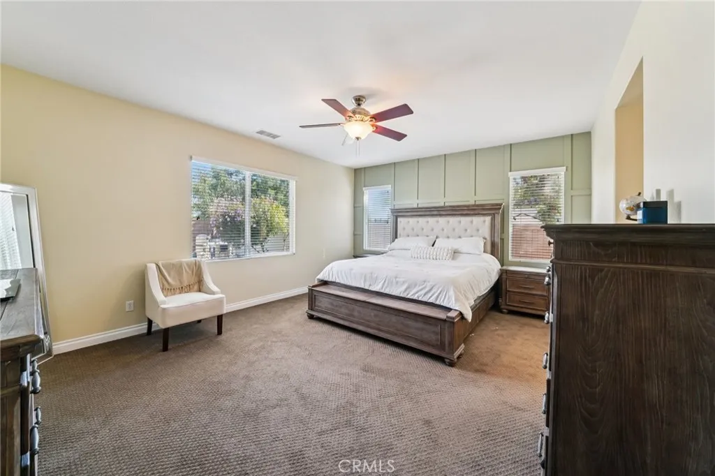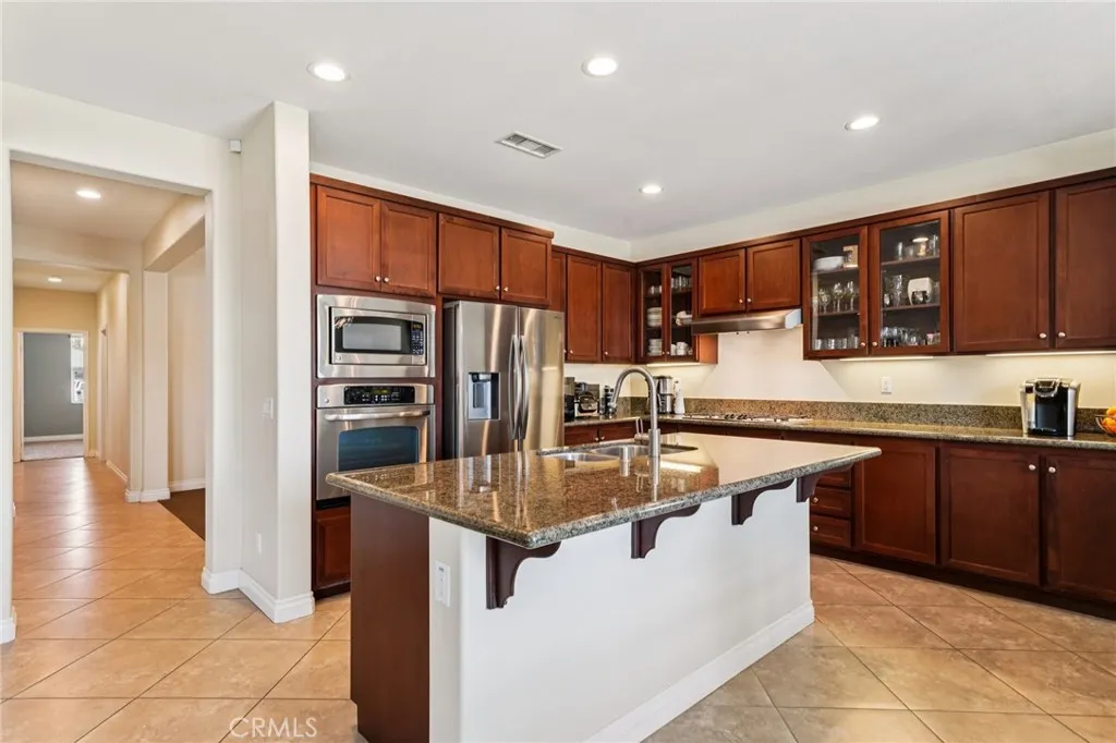 Gorgeous 3,156 Sqft. Single Story Pool & Spa Home with 4 Bedrooms, 3.5 Bathrooms, PLUS Office, PLUS Formal Dining Room – 18 Solar Panels & Prime Cul-de-Sac Location! Beautifully maintained and truly move-in ready, this exceptional home offers the convenience of main-level living with three bedrooms downstairs, plus a private upstairs suite featuring a bedroom (with a closet) and a full bathroom—perfect for multigenerational living, long-term guests, or a private media retreat. The main level features three spacious bedrooms, PLUS a dedicated office, PLUS a formal dining room, along with an open and inviting layout designed for everyday comfort and entertaining. The heart of the home is the expansive open kitchen that flows seamlessly into the family room and breakfast area, featuring a huge center island, abundant cabinetry, and a layout built for gathering. Step outside to your private backyard retreat with a beautiful saltwater pool and spa, ideal for relaxing, entertaining, and enjoying Southern California living year-round. Additional highlights include 18 solar panels for improved energy efficiency and a spacious 3-car tandem garage offering excellent parking and storage flexibility. Meticulously cared for and in beautiful condition throughout, this home truly reflects pride of ownership and is ready for its next owners to enjoy.