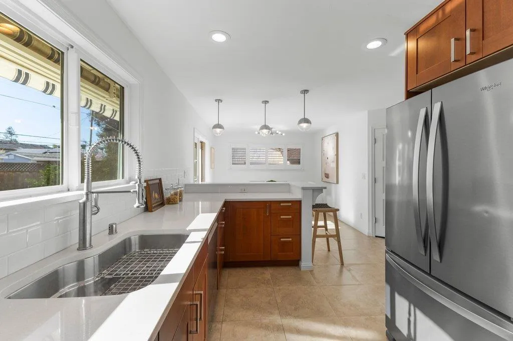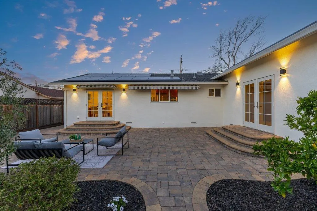 Beautifully remodeled Cambrian Park home offering approx. 1,450 sq ft of re-engineered living space. Fully gutted and rebuilt with permits, this property is effectively new construction. Extensive upgrades include revamped plumbing and electrical systems with a 200-amp service, a 240V electric car wall charger, and a 7kW solar panel system. Modern comfort is ensured with central HVAC, a tankless water heater, 1Gbps AT&T Fiber, and hard-wired networking. Superior insulation and soundproofing in all walls, dual-pane windows, solid-core interior doors, and French doors throughout. The home features a new chef's kitchen and two rebuilt baths, including a redesigned primary suite. Valet Custom Cabinets in all bedrooms and the finished garage, which boasts epoxy flooring and dedicated storage. Outdoor improvements include a beautiful playground with a slide, swings, and climbing wall, plus cobblestone hardscaping and new irrigation. A detached backyard office adds flexible bonus space with hardwood floors, LED lighting, and a ductless mini-split AC/heater. Located on a quiet street near tech hubs and top schools: Oster Elementary, Dartmouth Middle, and Branham High School.