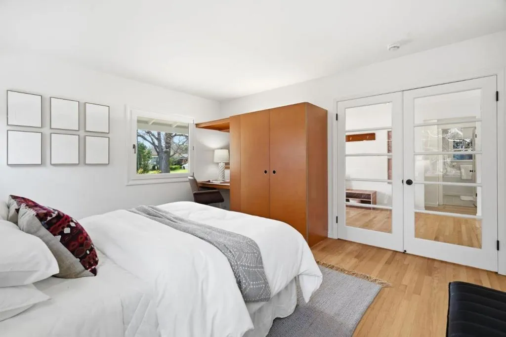 Welcome to this stunning 3 bedroom, 2 bath, home in the heart of Midtown. Set on a generous lot, this home's thoughtful layout offers easy flow between multiple living and entertaining spaces. Features include an updated kitchen with new oven and dishwasher, 3 large bedrooms, Clerestory windows offering ample natural light, and plentiful built-in cabinetry throughout. French doors from both the living room and primary suite open to a spacious deck overlooking the newly landscaped backyard, which features a new lawn, mature fruit trees, and plenty of space for gardening and gathering. Additional features include a detached garage with bonus room (120 sf) ideal for a home office or recreation and an energy-efficient roof. Offers convenient access to California Ave, Midtown shops, local parks, and the Bryant Street bike boulevard. Excellent Palo Alto schools!