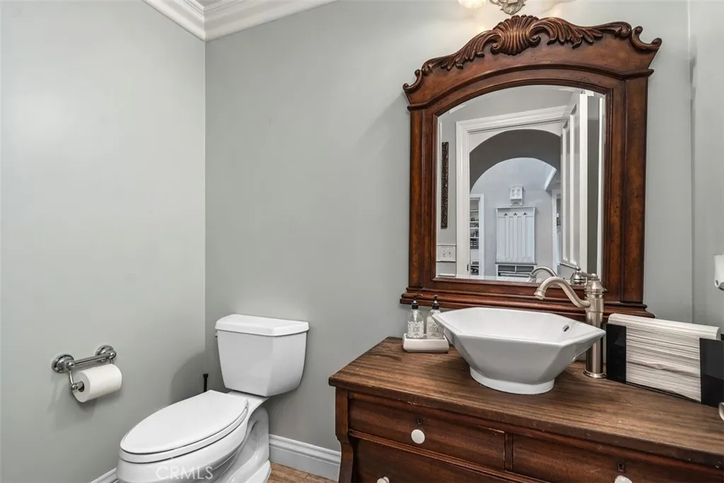 Nestled on a serene cul-de-sac, this stunning Nellie Gail Ranch custom home redefines multigenerational living with a main-level junior primary suite and an upstairs primary suite, plus a step-free lower level. Spanning almost 5,000 sq ft, this traditional residence offers 5 bedrooms, 3.5 baths, a bonus room, a craft room, an enormous laundry room and a separate office. Additional highlights include an oversized three-car garage and an owned solar system that helps reduce energy costs. A grand foyer welcomes you with beautiful flooring that flows seamlessly throughout, while brick wall accents add character and warmth. Enjoy two inviting living areas with fireplaces, a spacious dining room, and a kitchen that opens into the large family room. Upstairs, retreat to the primary suite featuring a private den, two large walk in closets and a primary bathroom with marble floors, a soaking tub, and dual vanities. The serene backyard is designed for relaxation and entertaining featuring a pool and spa, built-in BBQ, breathtaking views and a corner lot allowing for additional privacy. Nellie Gail Ranch delivers outstanding value with low HOA dues covering security, trail maintenance, and base membership to the swim, tennis, and pickleball club. Enjoy a clubhouse with restaurant, pools, 25 miles of scenic trails, parks, and community events—all in a top-tier equestrian neighborhood with easy access to freeways, shopping, and beaches. This remarkable home captures the essence of the Nellie Gail Ranch lifestyle—truly a must-see to appreciate its full charm and functionality.