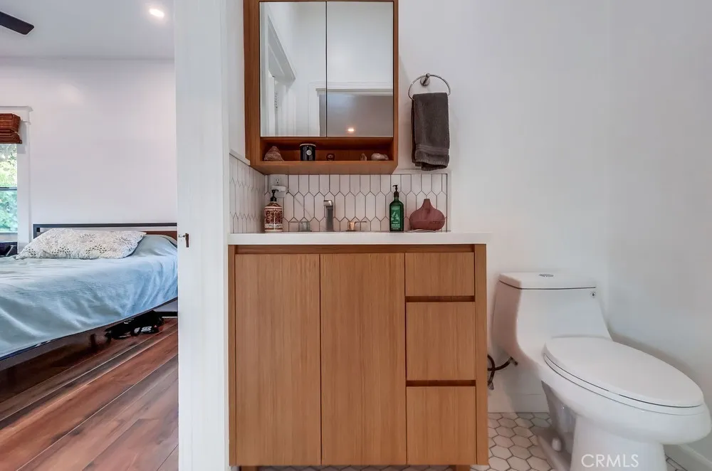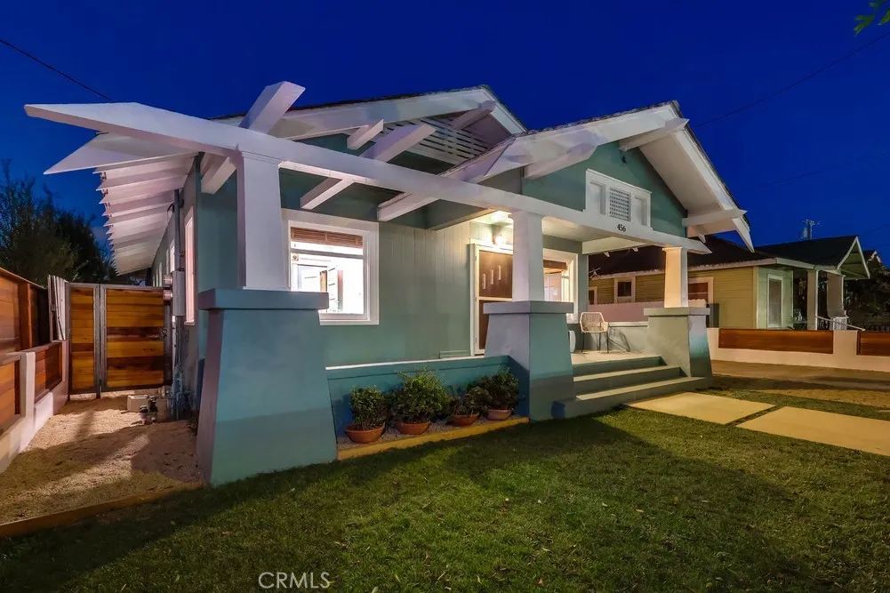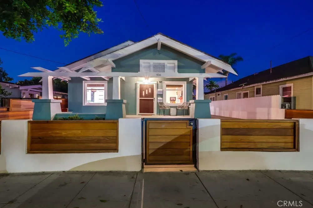 This early-century Craftsman home has been immaculately remodeled and features an accessory dwelling unit (ADU), perfectly situated in the heart of the vibrant "Retro-Row."The home showcases the timeless appeal of Craftsman style with its classic pitched roof, original hardwood floors, unique archways, and double-hanging windows. Upon arrival, the inviting red door and covered front porch set the tone for relaxation—ideal for a porch swing and a morning cup of coffee. Inside, a rustic brick fireplace welcomes you, complemented by abundant natural light streaming through multiple windows. The custom archway leads to a formal dining room, which connects to the kitchen, a cozy breakfast nook, and an additional family room. Both bedrooms are generously sized, with the master suite featuring an expansive walk-in closet to accommodate your storage needs. The long driveway easily accommodates parking for at least four vehicles, ensuring ample space for residents and guests alike. Out back, you'll find a beautifully landscaped yard perfect for entertaining or relaxing in privacy. Well-manicured lawn and patio space are ideal for barbecues or quiet evenings under the stars. Newly built one-bedroom ADU with dedicated kitchen area provide luxury living or rental income with nicely appointed fit and finishes.