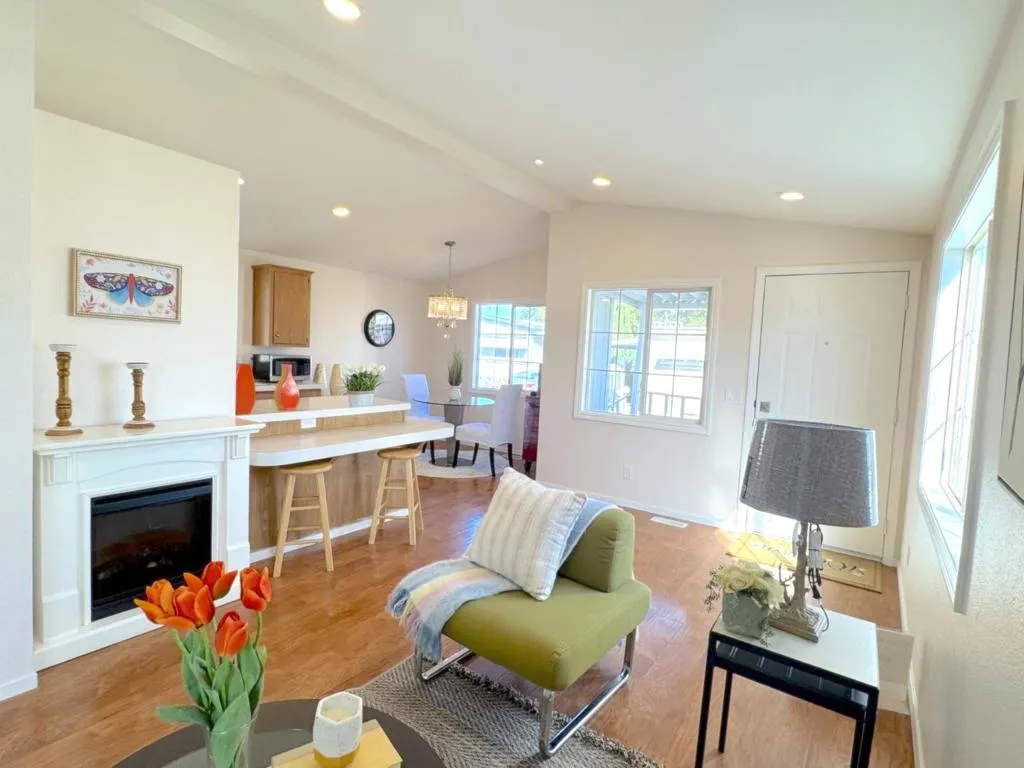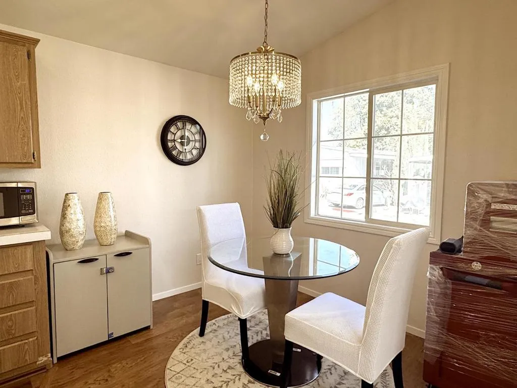 More than upgraded! House with an extra isolated layer in the roof and anti-earthquake support in the basement for enhanced comfort and safety. Welcome to this spacious 2-bedroom, 2-bath home in the desirable all-age community of Sun Valley Mobile. This home features a freshly painted interior and exterior, newly installed energy-efficient dual-pane windows, and recessed lighting throughout. Recent upgrades include new plumbing, a water heater, flooring, HVAC system, shingle roofing, an extended carport awning, porch decking, gutters, and siding. The bright living room boasts a vaulted ceiling, enhancing the open feel. Both bedrooms offer ample closet space and their own bathrooms. Outdoor space offers extra outdoor space ideal for BBQs or entertaining, plus a storage shed. Conveniently located near Costco, Lucky, the downtown farmers market, and with easy access to HWY 84 and I-580. Premium Outlets are just 10 minutes away, and top-rated schools are nearby. A community shuttle at the gate provides direct access to the BART station. Don't let this opportunity slip away, make it yours today!