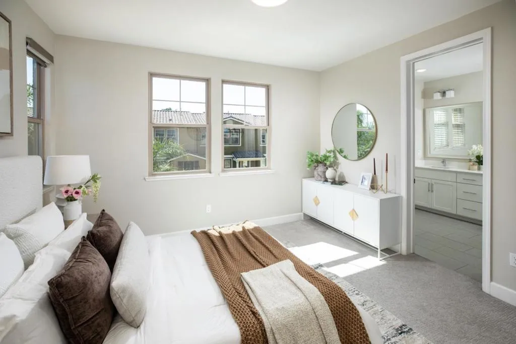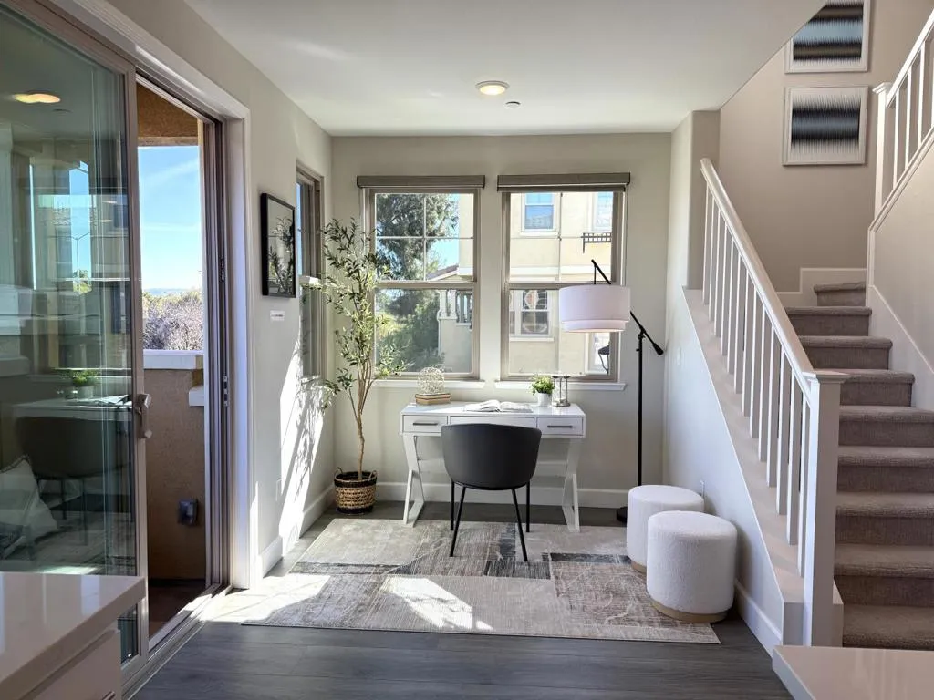 WOW! $150k Price Reduction - Amazing Value and Priced to Sell!! Built in 2018, this 4BD, 3.5BA end-unit is the largest floor plan in Taylor Morrisons 6Sixty community of 37 tri-level townhomes in vibrant Mountain View. Quality construction, 9-foot-high ceilings, wide-plank flooring, and abundant natural light. Great room with living-dining-kitchen, plus a versatile use nook area. 3 bedrooms on upper level including spacious primary suite with walk-in closet and en-suite bath. 4th bedroom and full bath on entrance level ideal for guests or home office. Modern island kitchen with breakfast bar seating, quartz counters, staggered tile backsplash, white shaker-style cabinetry with soft-close drawers, stainless steel appliances including 5-burner gas cooktop. Features abound: builder/custom upgrades, recessed lights, custom blinds, multi-zone heating and AC; tankless water heater. 2-car attached finished garage with EV-ready 240-volt outlet and extra storage. HOA $380/month: professional management, insurance, roof, exterior painting, private park, and more! Prime Mountain View location convenient to downtown, Caltrain, parks and outdoor trails; easy access to commute routes and many tech firms - Googles Quad Campus, Symantec, LinkedIn, Intuit, Microsoft, and Samsung within 4 miles