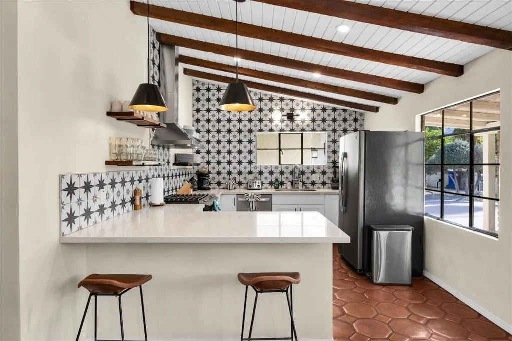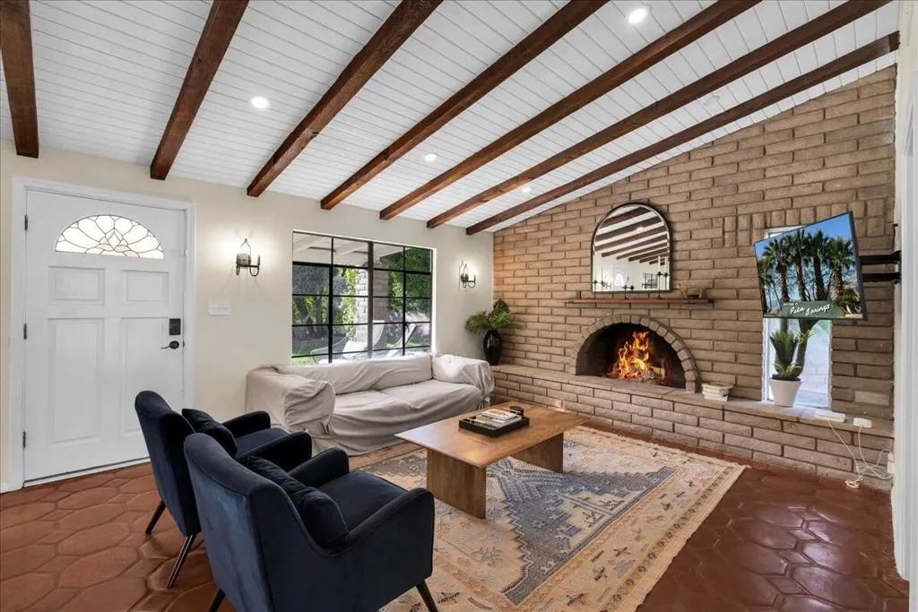 Stunning 1938 Spanish-Style Home in Warm Sands. Welcome to this beautifully preserved five-bedroom, four-bathroom Spanish-style residence located in the highly desirable Warm Sands neighborhood of Palm Springs. Blending timeless 1938 character with thoughtful modern upgrades, this fully gated property offers approximately 2,115 square feet of living space with breathtaking views of the San Jacinto Mountains. Inside, the home showcases classic Saltillo tile floors, vaulted and pitched ceilings, and charming brick accents, all centered around the original 1938 fireplace in the spacious living area. The updated open-concept kitchen and beautifully renovated bathrooms provide modern comfort while preserving the home's historic charm. The flexible floor plan includes five bedrooms, including a private attached casita with its own entrance and ensuite bathroom, ideal for guests, extended family, or additional rental income. Step outside to a resort-style backyard designed for relaxation and entertaining. Enjoy a Pebble-Tec saltwater pool and spa, multiple lounge areas, a fire pit, and a gas grill surrounded by mature landscaping and stunning mountain views. Conveniently located just minutes from the heart of Palm Springs, this home provides easy access to world-class dining, boutique shopping, art galleries, and scenic hiking trails. With excellent short-term rental returns and an active STR permit, this property presents a rare opportunity for both lifestyle and investment.Additional Highlights: Fully gated private property, Smart home features including keyless entry and smart thermostats, Tesla wall charger, Multiple outdoor seating and entertaining areas, Active short-term rental (STR) permit with strong rental history and future bookingsLocated in Warm Sands, which is currently under the STR permit cap. Whether you're seeking a primary residence, luxury vacation home, or high-performing investment property, this exceptional home delivers the perfect blend of historic Palm Springs charm, modern comfort, and resort-style living.Contact us today for additional information or to schedule a private showing!