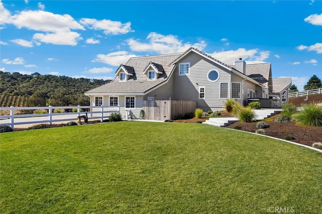 Nestled within the gated community of Falcon Ridge Estates in Arroyo Grande, 172 Falcon Crest Drive is perched atop a recently landscaped 2.65 acre lot and overlooks a lush valley and glimmers of the Pacific Ocean in the distance. The single story 3,769 sqft main residence features 3 spacious bedrooms, 3 bathrooms, and a versatile bonus room that could easily serve as a fourth bedroom, office, or media space. Cathedral ceilings soar throughout the home, complemented by expansive windows that flood the interior with natural light. A wood burning fireplace centers one of the two living rooms, and air conditioning allows for year round comfort. Nearly the entire home was thoughtfully renovated in 2023, including a new roof, wood floors, fully remodeled bathrooms, tankless water heater, new furnace, and most other interior/exterior finishes. One of the home’s most captivating features is the expansive 1,700+ sq ft heated wraparound porch. Above the large three-car garage, a private 1,100 sqft guest house (not included in the 3,769 sqft of main residence) provides incredible flexibility and value. Complete with its own kitchen, bathroom, living room, and bedroom, it’s ideal for family, guests, or potential rental income. Additional highlights include owned solar panels for energy efficiency and sustainability, generous parking, and a fully fenced playground space for littles or pets. This is a rare opportunity to own a unique turnkey property offering space, privacy, and stunning Central Coast views—all just a few minutes from the charming Village of Arroyo Grande, Pismo Beach, and San Luis Obispo.