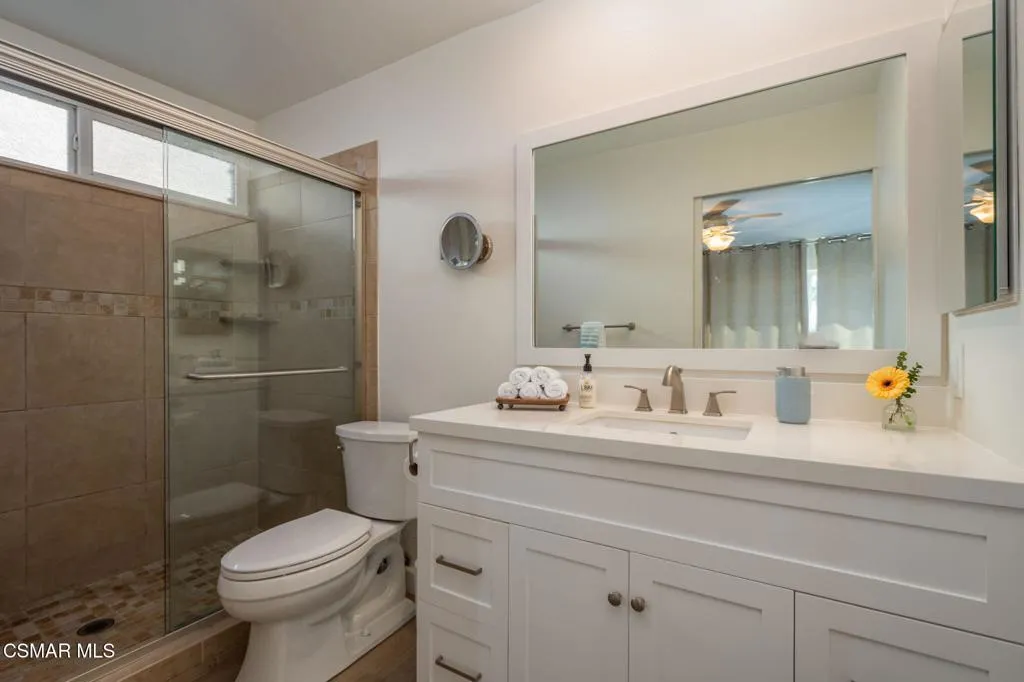 Welcome to effortless California Living in this beautifully upgraded home in the heart of Thousand Oaks. Designed for comfort, style,and modern efficiency. This 3 bedroom, 2-bath residence has it all. This lovely home showcases a stunning kitchen featuring an amazing ILVE Italian range with warming drawer, soft-close cabinetry, silestone countertops, microwave, range hood, and updated appliances. Light Neutral colored wood-like flooring enhance the living area with a cozy fireplace that overlooks the resort-like backyard. The dining room is close to kitchen for easy entertaining.The bathrooms have been tastefully refreshed with new vanities, fixtures, mirrors, and high-efficiency toilets. Fresh interior paint (including ceilings), new baseboards, updated interior doors and frames, dual paned windows.and mirrored closet doors create a cohesive, move-in-ready feel throughout Major improvements provide peace of mind, including a newer roof, fully paid solar with upgraded 200-amp electrical panel, double-pane windows, enhanced attic insulation, LED lighting throughout, ceiling fans in every room, dimmable lighting, Google smart thermostat and doorbell, and a sewer reverse cleanout. Step outside to your private backyard retreat featuring a saltwater pool and spa. Beautiful lighting and drought free landscape too, also an updated heater, pump, salt cell system, and an AquaLink programmable control. Drought-tolerant landscaping, turf, newer fencing, and upgraded irrigation with programmable timer create a low-maintenance, resort-style setting. A spacious side-yard storage shed adds flexibility and function. Beautifully maintained and extensively improved, this move-in-ready Thousand Oaks gem offers comfort, efficiency, and stylish single-level living.The best part is the location with Sapwi Trails community park a few steps away, has 6.7 miles of trails for hiking and biking, a skate and pump track for the littles and an amazing park, disc golf. Beautiful wildlife including an array of birds,a place where neighbors and friends gather. Great schools close by. wonderful shopping, dining and freeway access all you need is close by. I can go on and on about this home, come see for yourself the love and care that was put into this beauty. Ahhhh, Southern California Living!