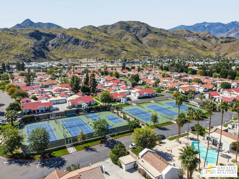 Located in desirable South Palm Springs, this extensively renovated single-level residence with an attached two-car garage offers a rare combination of thoughtful architectural redesign, modern systems upgrades, and high-quality custom finishes. Unlike many homes, this residence features no shared living-area walls, providing added privacy and comfort. Originally reimagined in 2020, the renovation went far beyond cosmetic updates. The interior was architecturally reconfigured to improve flow and functionality, including raising the hallway ceiling approximately six inches after duct removal, eliminating the original HVAC closet, expanding the secondary bedroom closet, and converting the second bedroom into a private en-suite retreat. All popcorn ceilings were removed, creating a clean and modern aesthetic throughout. The redesigned kitchen features custom two-tone cabinetry, soft-close drawers and doors, deep storage drawers, built-in spice storage, integrated trash and recycling, an LG gas range with double ovens, an under-counter beverage refrigerator, and a new KitchenAid dishwasher (2026). The expanded layout creates an ideal space for cooking and entertaining. Both bathrooms have been fully remodeled with custom cabinetry, extensive tile work, lighted mirrors, quiet exhaust fans, and built-in storage organizers. Modern comfort is ensured with energy-efficient mini-split HVAC systems installed in each bedroom and two in the great room, along with an upgraded electrical panel, new windows and sliding doors, and a gas water heater replaced in 2020. Interior features include a modern electric fireplace with tiled surround, recessed dimmable lighting, acoustic wood panel accents at the entry and hallway, remote-controlled window treatments, and custom closet organizers in both bedrooms. Matching indoor and outdoor tile flooring creates a seamless indoor-outdoor flow. Outdoor spaces were thoughtfully enhanced with an expanded entry walkway, landscape lighting, faux basalt fountain, rear aluminum patio cover, and built-in gas BBQ with granite counterperfect for enjoying the Palm Springs lifestyle. The finished garage includes a raised washer and dryer for easier access, a laundry sink, full wall built-in storage cabinetry, a steel ceiling storage rack, and LED lighting. This home represents a true architectural modernization rather than a simple remodel, offering upgraded systems, improved design, and move-in ready convenience in one of Palm Springs' most desirable locations.