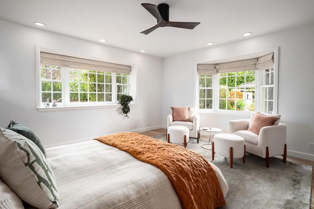 Nestled at the end of a quiet cul-de-sac in the highly desirable Covenant of Rancho Santa Fe, this charming residence offers privacy, tranquility, and walkable access to the village, Roger Rowe School, the Rancho Santa Fe Golf Club, and the Rancho Santa Fe Tennis Club. A gated entry courtyard and expansive motor court welcome you with mature landscaping, a central fire pit, and inviting spaces for entertaining or relaxing. Inside, the open, light-filled floor plan captures beautiful southwestern and golf course views. The chef’s kitchen features a large center island, custom cabinetry, stone and wood finishes, premium appliances, top-tier hardware, and counter seating for casual dining. The formal dining room with large windows overlooks the private gardens and scenic vistas, while two generous living areas—one with a fireplace—offer comfortable gathering spaces. Two main-level bedroom suites include an oversized primary retreat with French doors to the outdoors, a spa-inspired bath, and a spacious dressing room. A private office completes the main level. The lower level offers two additional bedroom suites and a versatile bonus room opening to the grounds. Outdoors, enjoy a large view deck, outdoor fireplace, lush gardens, and direct access to the Rancho Santa Fe Trail System. Additional highlights include hardwood floors, custom lighting, owned solar, an oversized laundry room, exotic fruit trees, raised bed gardens, a chicken coop, and a two-car garage with storage. There is also room to add a pool. A true Rancho Santa Fe treasure blending indoor-outdoor living, luxury Nestled at the end of a quiet cul-de-sac in the highly desirable Covenant of Rancho Santa Fe, this charming residence offers privacy, tranquility, and walkable access to the village, Roger Rowe School, the Rancho Santa Fe Golf Club, and the Rancho Santa Fe Tennis Club. A gated entry courtyard and expansive motor court welcome you with mature landscaping, a central fire pit, and inviting spaces for entertaining or relaxing. Inside, the open, light-filled floor plan captures beautiful southwestern and golf course views. The chef’s kitchen features a large center island, custom cabinetry, stone and wood finishes, premium appliances, top-tier hardware, and counter seating for casual dining. The formal dining room with large windows overlooks the private gardens and scenic vistas, while two generous living areas—one with a fireplace—offer comfortable gathering spaces. Two main-level bedroom suites include an oversized primary retreat with French doors to the outdoors, a spa-inspired bath, and a spacious dressing room. A private office completes the main level. The lower level offers two additional bedroom suites and a versatile bonus room opening to the grounds. Outdoors, enjoy a large view deck, outdoor fireplace, lush gardens, and direct access to the Rancho Santa Fe Trail System. Additional highlights include hardwood floors, custom lighting, owned solar, an oversized laundry room, exotic fruit trees, raised bed gardens, a chicken coop, and a two-car garage with storage. There is also room to add a pool. A true Rancho Santa Fe treasure blending indoor-outdoor living, luxury finishes, and an exceptional Covenant location.