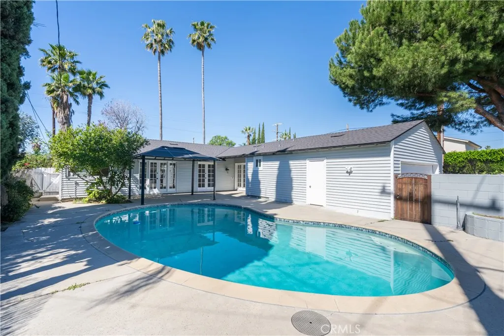 Discover refined comfort and effortless California living in this beautifully updated, turnkey, thoughtfully designed living space. From the moment you enter, you’re greeted by an open and airy floor plan filled with natural light from expansive, energy-efficient dual-pane windows. Fresh interior paint and newer upgraded flooring create a clean, contemporary feel throughout. The spacious living room features a cozy fireplace, seamlessly flowing into a large dining area ideal for entertaining. A formal dining room with elegant French doors opens to the backyard, creating the perfect setting for summer alfresco dining. In total, three sets of French doors provide beautiful indoor-outdoor connectivity and direct access to your private backyard oasis. The upgraded kitchen showcases stone countertops, modern cabinetry, and a functional layout designed for both everyday living and hosting. Bathrooms have been tastefully updated, offering comfort and style. Step outside to enjoy the sparkling pool and inviting outdoor space—ideal for relaxing weekends or lively gatherings.
