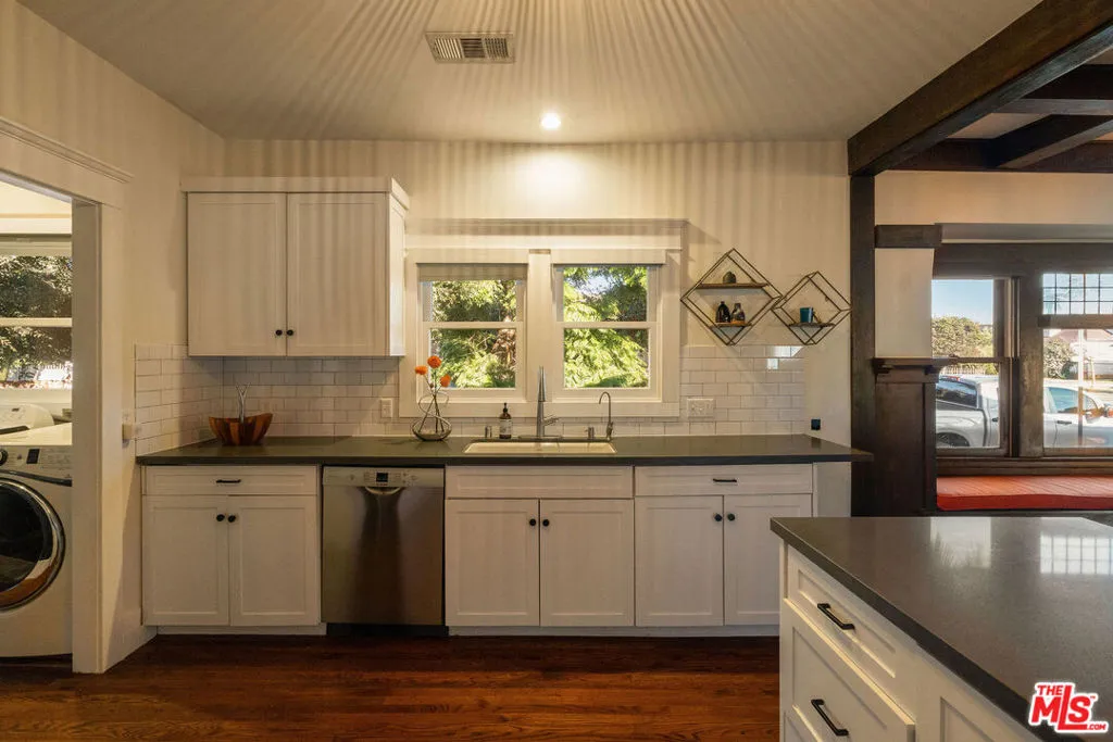 Looking for a character-rich Craftsman home in Jefferson Park? This is it. Originally built for accountant Frederick Eskild Peterson, who favored the area due to its proximity to streetcar lines on Adams and Jefferson Boulevards, this 1911 bungalow is a prime example of the architecturally significant Craftsman homes that make up Jefferson Park's coveted HPOZ. You'll be lured in by the details, but you'll stay for the warm, rich and inviting feeling you get after taking just one step inside. White Oak and Douglas Fir flooring, leaded glass windows, coffered ceilings, a statement fireplace, built-ins, a window seat and wainscoting in both the living and dining rooms make up the home's signature features. Thanks to an extensive renovation, this beauty has more than just character and history. Fully permitted improvements include a bolted foundation, updated electrical and 200 amp panel, copper plumbing, central HVAC, tankless water heater and EV charger. The kitchen and bathrooms were updated with a nod to the past, but an eye towards modern-day living, so they feel cohesive and intentional. A large primary bedroom plus en-suite bath sits at the back of the home with French doors opening on to a private deck. Sip morning coffee or an afternoon spritz underneath the shade of a large avocado tree. With patio space and a turf lawn surrounded by hedges, jacarandas and mature trees, the backyard provides a secluded escape from everyday life and plenty of room to entertain. Situated on a prime corner lot with a large, detached two-car garage. Close to Expo and K Line stops offering easy access to DTLA, Culver City, Santa Monica and LAX. If it's food and entertainment you desire, you'll find the areas hottest spots, including Johnny's West Adams, Highly Likely, Cento Pasta Bar and Raw Bar, Alta, Delicious Pizza, Mizlala, Tartine, Taqueria Los Anaya, Maydan Market and newly opened whiskey bar, The Little Room, just minutes away. This home has emotion and practicality in a true community. Come take a look!