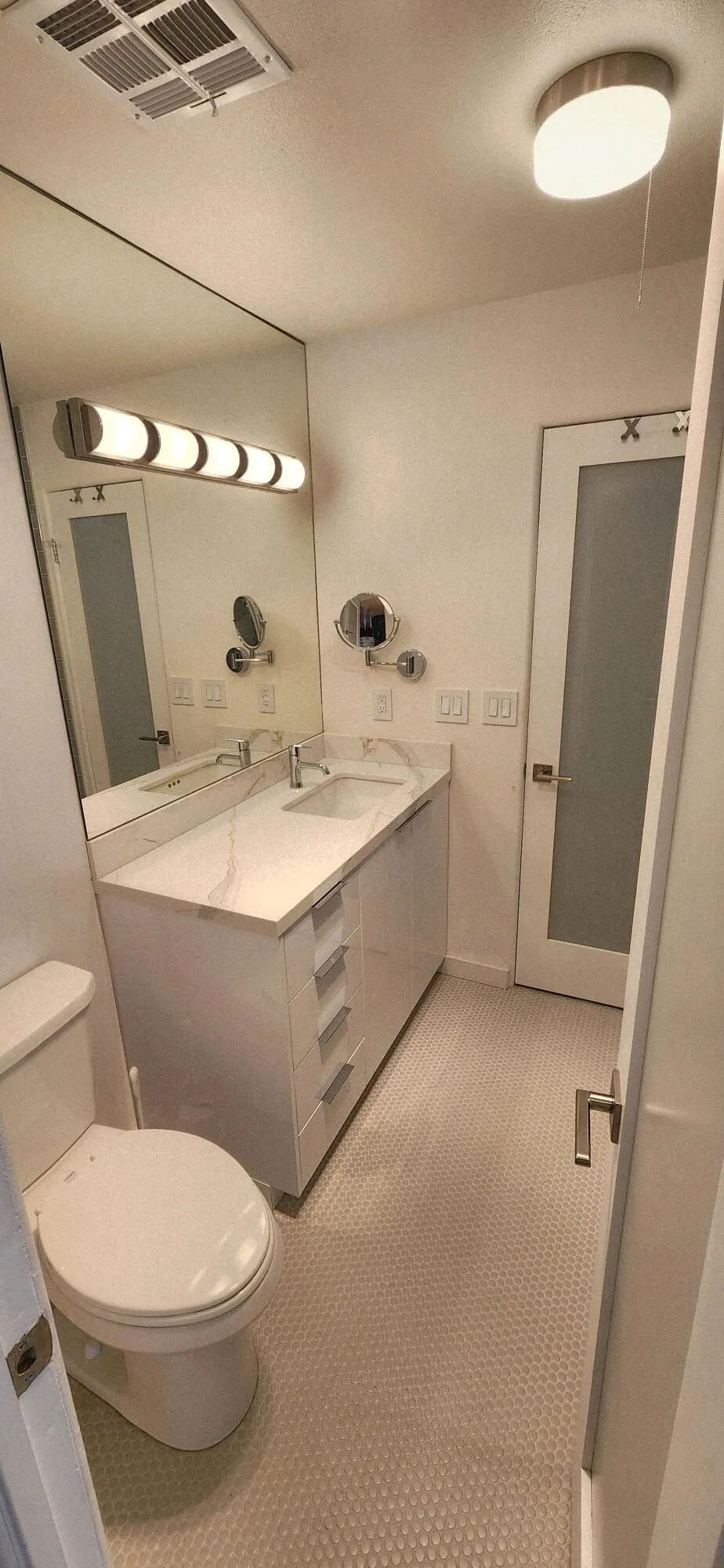 This tastefully remodeled home boasts a wide range of energy-saving improvements, including a paid-off solar system, EV charging station, newer roof, A/C and furnace, ceiling fans throughout, and dual-pane windows all designed to lower utility costs. The spacious layout features a centrally located kitchen with newer stainless-steel appliances, a walk-in pantry, quartz countertops, and ample cabinetry. Adjacent is a spacious family room with a custom bar area, perfect for daily living or entertaining guests. Recent renovations include stylish interior and exterior doors, plus fresh paint. The primary suite offers a walk-in closet and French doors to a private patio. Both bathrooms have been updated for comfort and modern appeal. The large golf cart garage includes storage and a work bench, offering a dedicated space for hobbies and projects. Located in Palm Desert Greens, a highly desirable 55+ community, residents enjoy numerous amenities including a Restaurant and Bar. You OWN the land, and a low $400 monthly HOA covers cable TV and internet, trash service, 24/7 guard-gated security, and FREE GOLF! Experience firsthand why this property exemplifies exceptional desert living.