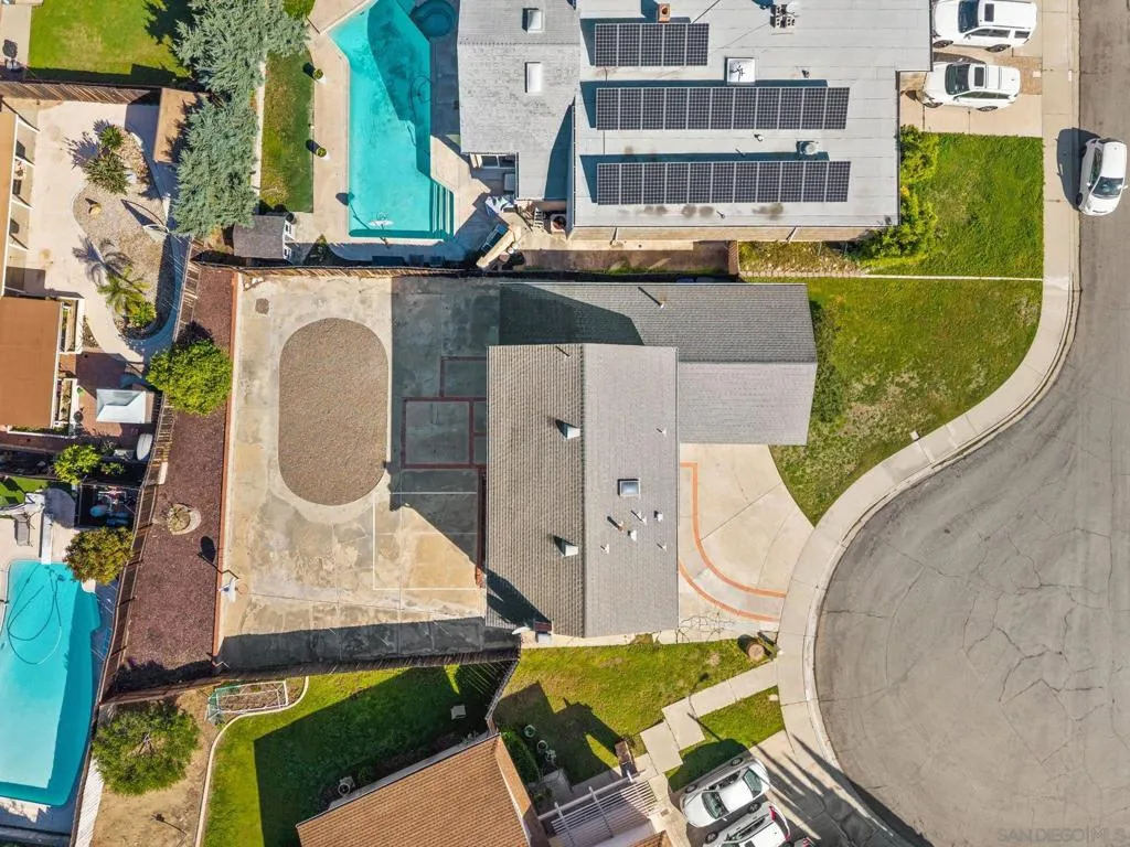 Beautifully refreshed home situated on a quiet cul-de-sac in Poway, offering thoughtful upgrades, comfortable living spaces, and a spacious backyard. Recent improvements include freshly painted interior and exterior, new carpeting upstairs, refinished kitchen cabinetry, and a remodeled bathroom featuring a modern vessel sink and updated fixtures. Inside, the home offers bright and inviting living spaces with a functional layout that flows easily between the kitchen, dining, and living areas. The kitchen features refinished white cabinetry, stainless steel appliances, and a skylight that brings in natural light while maintaining excellent everyday functionality. Upstairs, the new carpeting adds comfort to the bedroom spaces, while updated stair finishes and railings provide a clean, modern touch. The remodeled bathroom offers a stylish vanity with glass vessel sink, contemporary lighting, and updated finishes. Outside, the property features a large, usable backyard with plenty of room for outdoor dining, entertaining, gardening, or future possibilities such as a pool or expanded outdoor living space. Located in a desirable Poway neighborhood with scenic surroundings and nearby parks, this home presents a move-in-ready opportunity with meaningful upgrades and great outdoor space.