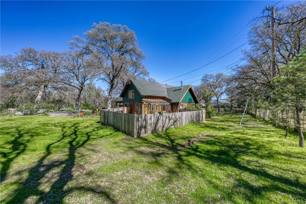 Enchanting, one-of-a-kind log home on 2.62 acres in one of North Lakeport’s most desirable neighborhoods. Tucked away at the end of a quiet cul-de-sac, this special property welcomes you through a gated entry and down a paved driveway that opens to a circular driveway in front of the home, creating a beautiful arrival surrounded by mature oak trees. This unique 2,880 square foot home offers 3 bedrooms and 2.5 bathrooms, featuring stunning vaulted wood ceilings, cozy fireplaces, and warm rustic character throughout. The remodeled kitchen showcases beautiful concrete countertops and sits next to the formal dining room, making it ideal for both everyday living and entertaining. The home has seen many upgrades over the years, too many to list. Just off the dining room is a bright sun-room that opens directly to the picturesque backyard. The spacious layout includes two bonus rooms, one located inside the home and another large bonus room above the two-car garage, with a separate entrance, offering endless possibilities for a second unit, gym, or game room. Outdoor living is just as impressive with multiple covered decks and balconies, plus a patio area designed for gatherings featuring custom park-style stone bench seating, a gazebo, and an outdoor fire-pit that creates a truly magical setting. There are also two additional decks down in the yard, perfect for entertaining and enjoying the peaceful natural surroundings. The driveway offers abundant parking with space for 10 or more vehicles, plus plenty of room for RV and boat parking. The wooded park like setting also provides the option to place an RV further back on the property for added privacy, creating a magical camping like retreat right in your own backyard. The fully fenced property is well maintained and offers plenty of space for animals or horses, complete with stalls and multiple fenced areas. A major bonus is that the property features both a private well and public water service. A detached metal storage building with a roll-up door provides additional storage for equipment, tools, or another vehicle. Located just minutes from town, shopping, restaurants, and the hospital, this peaceful property offers the perfect balance of privacy, space, and convenience. A rare opportunity to own a truly special North Lakeport home.