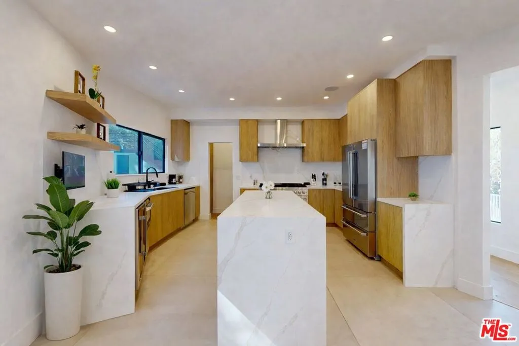 Experience unmatched value and modern luxury in this fully reimagined contemporary home in Royal Woods. Completed in 2025 with full city permits, this down-to-the-studs transformation offers the feel and quality of brand-new construction, set on a generous 10,114 sq ft lot just moments from Royal Oaks. Every inch of the 4-bedroom, 3-bathroom, 2,631 sq ft residence has been meticulously rebuilt with elevated designer finishes and state-of-the-art smart home technology. All major systems are new, including electrical, plumbing, HVAC, roof, windows, insulation, and smooth stucco, providing exceptional efficiency, longevity, and true peace of mind for years to come. A striking newly designed driveway and two-car garage introduce a gated private courtyard entry, creating a dramatic and welcoming first impression.Inside, soaring ceilings and walls of floor-to-ceiling glass flood the home with natural light, while an open-concept layout seamlessly connects the living room, dining area, and chef's kitchen with effortless flow. The designer kitchen features custom white oak cabinetry, quartz surfaces, and a 48-inch professional dual fuel range, anchoring the home as a true culinary centerpiece, and opens to a warm modern family room with a sleek fireplace and wood paneling. Expansive five-panel folding glass doors dissolve the boundary between indoors and outdoors, creating seamless California-style living and entertaining. The resort-inspired backyard has been completely redesigned, featuring elegant stone pavers, a lounge deck, lush landscaping, and a stunning 20-foot architectural container lap pool that serves as both a striking sculptural centerpiece and a rare luxury amenity. The home is fully outfitted with premium smart home features including Lutron lighting, integrated Sonos audio, automated window shades, smart climate control, and advanced security, offering intuitive, fully connected living at the touch of a button. The serene primary suite offers a spa-inspired retreat with a beautifully appointed bathroom designed for relaxation and comfort. Two additional bedrooms share a full bath, and a fourth ensuite bedroom provides flexibility for guests, extended family, or a private office. Direct garage-to-kitchen access adds everyday convenience. Set in the exclusive Royal Woods enclave of Sherman Oaks, with easy access to Ventura Blvd, the Westside, top schools, and scenic canyon routes, this property combines modern architecture, high-end craftsmanship, and exceptional long-term value in one of the Valley's most sought-after neighborhoods. A true turnkey opportunity.