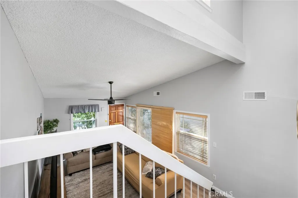 Welcome to 22158 James Alan Circle, a delightful Rockpointe Town House. Set back from the street and into the majestic Chatsworth foothills, this town house is in one of the best locations for peace and quiet. Enter a spacious living room filled with natural light and open to your very private and over-sized patio. A perfect place to entertain family and friends or enjoy a quiet moment of serenity. Adjacent to the living room is an additional living area that can serve as formal dining, TV/family/playroom, or home office – you decide! The remodeled kitchen is light and bright with abundant storage, stainless steel appliances, granite counters, and a view of both private patio areas. Upstairs there is a very large primary suite with beautiful views of the Chatsworth mountains. Also upstairs are 2 very large bedrooms and a full bathroom. This home includes a 2-car garage, with additional storage space, and laundry area. Newer roof, recently replaced HVAC, and updated windows add practical benefits to this very special property. The Rockpointe community offers fantastic resort-style amenities, with expansive green spaces, pools, spas, a clubhouse, children's playgrounds, and scenic hiking and biking trails, all just minutes from shopping, dining, and highly rated magnet schools. This property offers an assumable FHA loan for qualified buyers!
