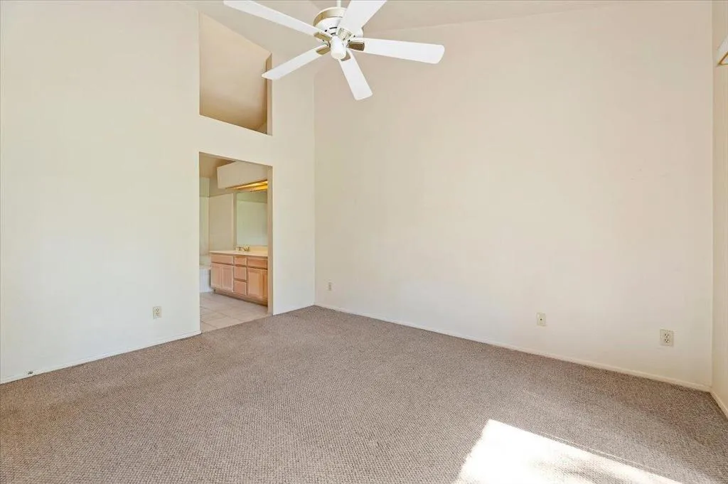 What if you could own a home in Palm Desert Resort Country Club with greenbelt views and a community pool just steps from your patio?This two-bedroom plus den home offers flexible living space perfect for guests, a home office, or a quiet retreat. The living room features vaulted ceilings, plantation shutters, and a fireplace that creates a warm and inviting atmosphere.The kitchen opens to an informal dining area designed for comfortable everyday living.Highlights include:Two-car garage Greenbelt location Community pool just steps away Short-term rentals allowed.Palm Desert Resort Country Club is a gated community featuring a lush 18-hole championship golf course, clubhouse, tennis courts, bocce ball, lakes, and beautifully maintained greenbelts throughout the community.Association dues include building and grounds maintenance, cable TV, clubhouse access, and trash service.