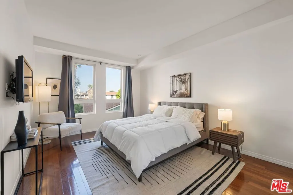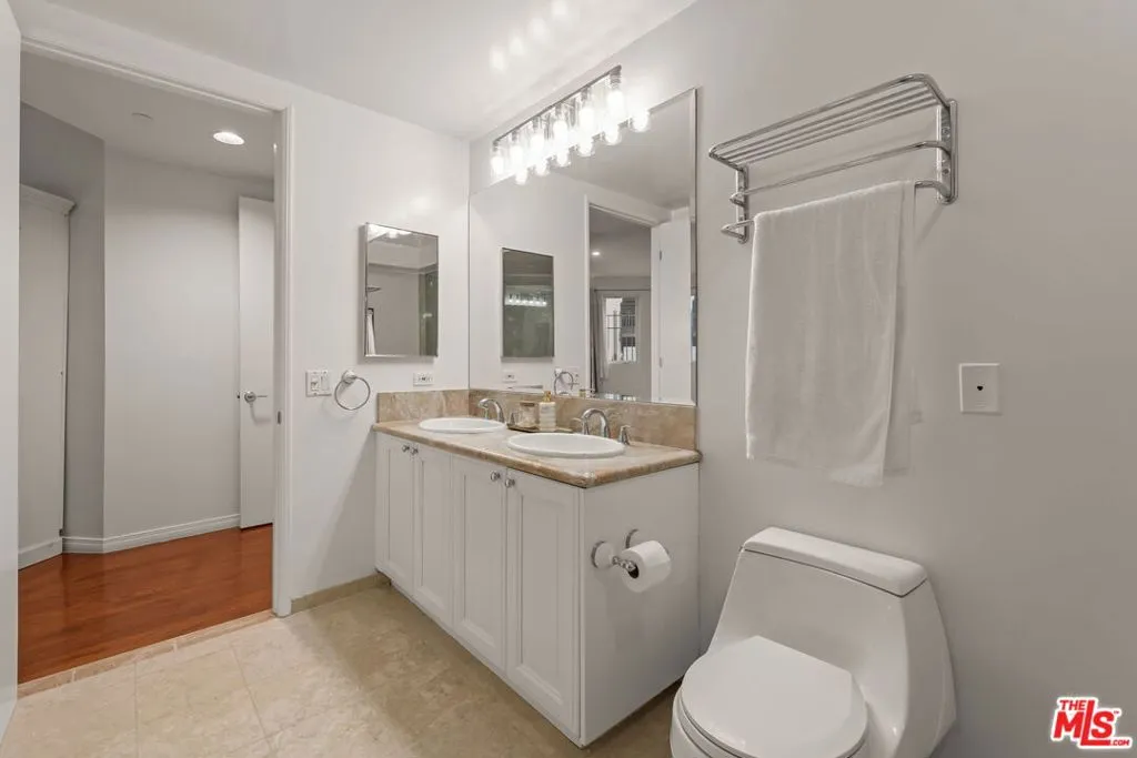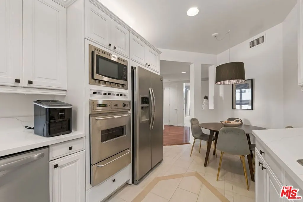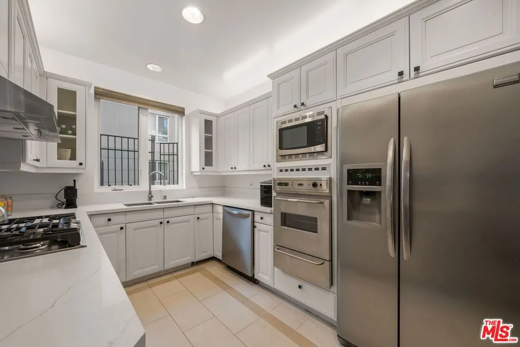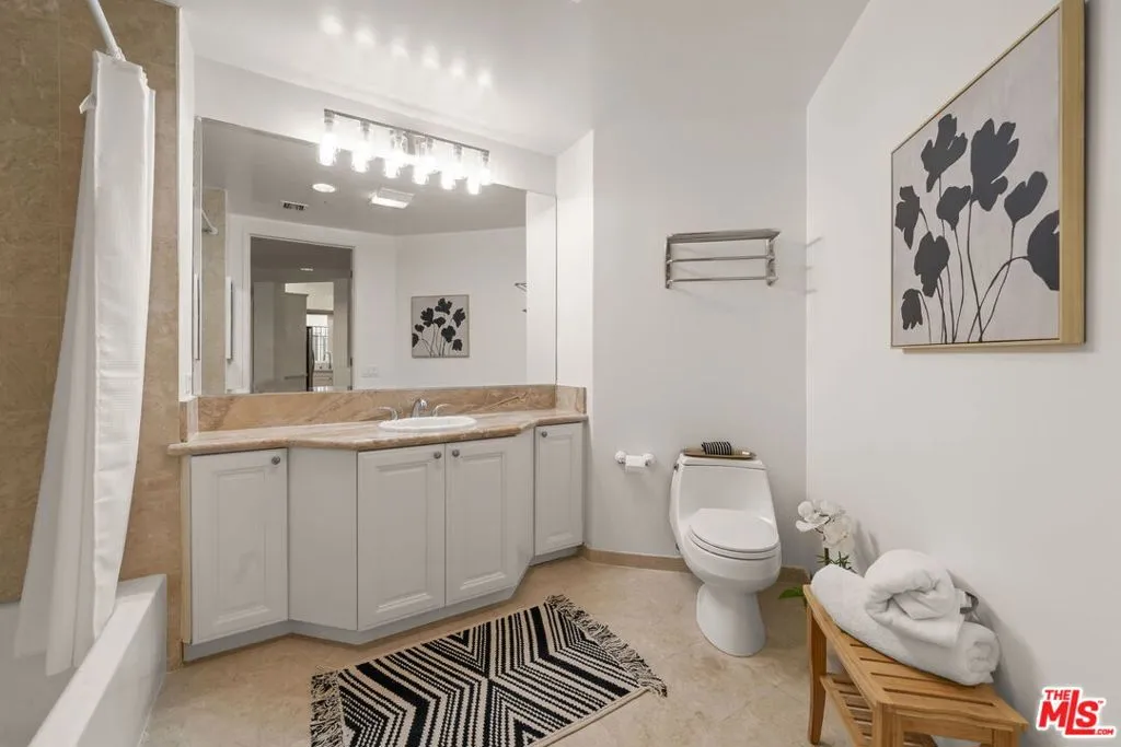 Luxury 2-bedroom, 2-bath residence at the Wilshire Borgata in the West Los Angeles Brentwood area. Bright, open living and dining spaces feature high ceilings, recessed lighting, engineered wood flooring, and a fireplace, creating an airy and comfortable environment. A large corner balcony extends the living space outdoors, offering an ideal setting for indoor outdoor living. The updated kitchen includes quartz countertops, stainless steel appliances, ample cabinetry, and a cozy eat-in bistro dining area. The oversized primary suite is private and inviting, complete with its own fireplace, walk-in closet, and en-suite bath with dual vanities, soaking tub, and separate glass-enclosed shower. A spacious second bedroom large enough for a king-size bed offers flexibility for guests, a home office, or additional living space and is served by a full bath. This unit also shares no common walls with other units. Additional highlights include central heat and air, a full-size in-unit washer and dryer, private locked storage, and two-car tandem parking in a secured garage. Wilshire Borgata amenities include controlled access, daytime doorman service Monday through Friday (8 AM - 3 PM), a heated pool and spa, fitness center with sauna, recreation and meeting spaces, approximately 23 guest parking spaces, two EV charging stations, and earthquake insurance. Ideally located in West Los Angeles with easy access to Brentwood, Santa Monica, Westwood Village, and UCLA. Express buses along Wilshire Boulevard provide convenient commuting options. The neighborhood offers a wide range of nearby cafes, dining, and everyday conveniences, including a sushi restaurant, deli, and dry cleaner located within the building, as well as close proximity to Brentwood Village bringing together full-service comfort with walkable West LA living.
