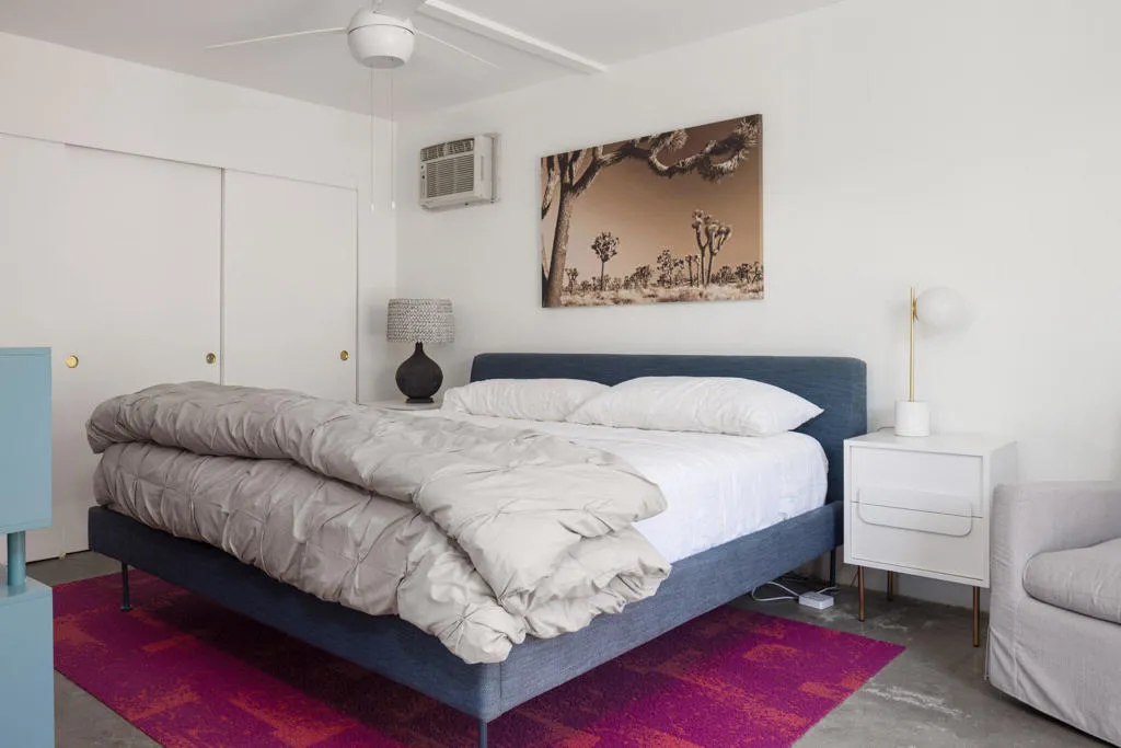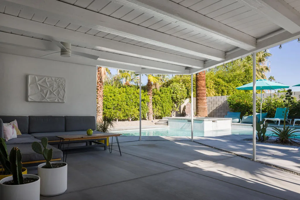 There's a certain warmth you feel the moment you arrive--sunlight dancing through breeze blocks, mountains rising behind a red-tile roof, and the kind of easy Palm Springs calm that invites you to slow down. Built in 1950, this home still wears its mid-century soul proudly: original kitchen cabinetry, vintage tile in the baths, clerestory-style light, and clean indoor-outdoor lines.Inside, polished concrete floors stretch through the open living space, connecting directly to a backyard made for desert days. A new heated pool and spa glisten beneath the palms, with room to lounge, dine, and drift into the evening sky. The kitchen blends past and present effortlessly with its preserved details, stainless steel refrigerator, and new Bosch dishwasher, proving that charm and convenience can coexist beautifully.The main house offers two bedrooms and two baths, while a separate guest casita adds a private bedroom and living area (approx 200sqft extra)--ideal for visitors, creative space, or flexible use. Attached to the casita sits a small workshop/storage room, perfect for hobbies or gear. With a new roof and thoughtful upgrades throughout, the home feels cared for, fresh, and ready for its next chapter.A true Palm Springs classic--mid-century character, modern comfort, and a backyard oasis framed by blue sky and mountain views.Sellers are also offering a 2/1 buydown for buyers using a loan. This reduces your interest rate by 2% the first year and 1% the second year, saving you thousands!