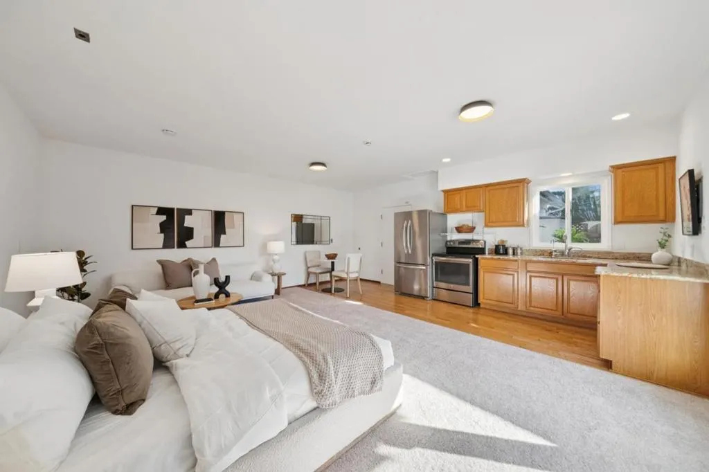 Modern Willow Glen Farmhouse with Guest Cottage on Rare 11,375 Sq Ft Lot, Walk to Downtown Willow Glen.Extensively upgraded with detached guest cottage offering a highly desirable multi-generational floor plan ideal for in-laws, extended family, guests, or private office space.Main home 3 bedrooms, 2.5 bathrooms and 1,795 sq ft plus an attached 2-car garage. The detached cottage (442 sq ft) includes a full kitchen, full bathroom, private living space and attached 1-car garage, providing exceptional flexibility.The gourmet chefs kitchen features a Wolf range, JennAir refrigerator, and walk-in pantry.Seller upgrades:new interior paint (2026), refreshed professional landscaping (2026), new lighting (2026), exterior paint (2025), tankless water heater (2025), new whole-home HVAC (2024), mini-split climate system in the primary suite (2024), new front door with smart lock (2024), reverse osmosis & water softener systems, and owned solar panels.The private cottage has been refreshed with new paint, carpet, and lighting (2026) plus mini-split HVAC and tankless water heater.Enjoy indoor-outdoor living with a Trex deck, patio lounge and dining areas, plus a private garden retreat with raised beds and mature fruit trees including apricot, plum, apple, Asian pear, persimmon, lemon, and fig
