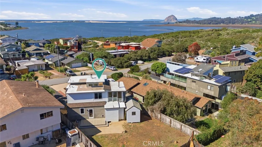 Discover this beautiful and unique modern home tucked away in a private, relaxing setting just 7 houses from the Elfin Forest and moments to Baywood Park. Thoughtfully designed, this home blends style with breathtaking natural surroundings. The wraparound balcony showcases sweeping views of the bay, Morro Rock, iconic Seven Sisters and spectacular sunsets. Inside, every room features beautiful exposed wood beam ceilings. Downstairs, the primary suite offers a spacious walk-in closet with laundry, shower, and custom double-sink vanity. There are also two guest bedrooms, one with access to the back yard, plus a separate 3/4 guest bathroom. Upstairs, the light-filled living room impresses with expansive windows, a freestanding fireplace, and French doors opening to the front balcony. The updated kitchen features black granite countertops, matching appliances and an adjoining spacious dining area with large viewing windows. There is a 3/4 guest bathroom for convenience. Outside, enjoy the large blank-space backyard ready for you to add your own personal touches and two convenient storage sheds. The front yard has planter boxes, a charming boardwalk walkway, carport and long driveway which provides extra parking . Located on a quiet cul-de-sac street, this one-of-a-kind coastal property offers privacy, beauty, and convenience.