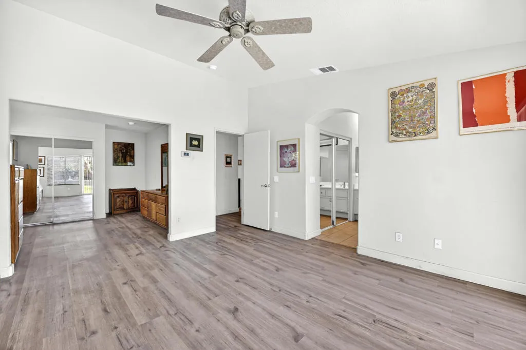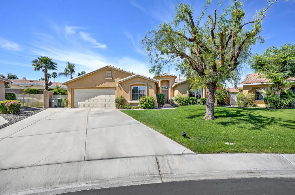 Welcome to Las Brisas II, a desirable 55+ gated community known for having one of the lowest HOA fees in the Coachella Valley.Situated on a large, beautifully landscaped pie-shaped lot, this home offers exceptional outdoor space and privacy--perfect for relaxing, entertaining, or enjoying the peaceful desert lifestyle.Inside, the home features an updated interior with modern finishes, including refreshed flooring and an upgraded kitchen designed for comfortable everyday living and easy entertaining.The spacious primary suite includes a large additional sitting area that was originally a third bedroom and could easily be converted back, creating the potential for a fourth bedroom or flexible living space such as a home office, reading retreat, or private lounge.Residents of Las Brisas II enjoy the security of a gated community and an ideal location close to shopping, golf courses, dining, and entertainment throughout the Coachella Valley.This home offers a wonderful combination of space, flexibility, and lifestyle in one of Indio's most affordable 55+ communities.
