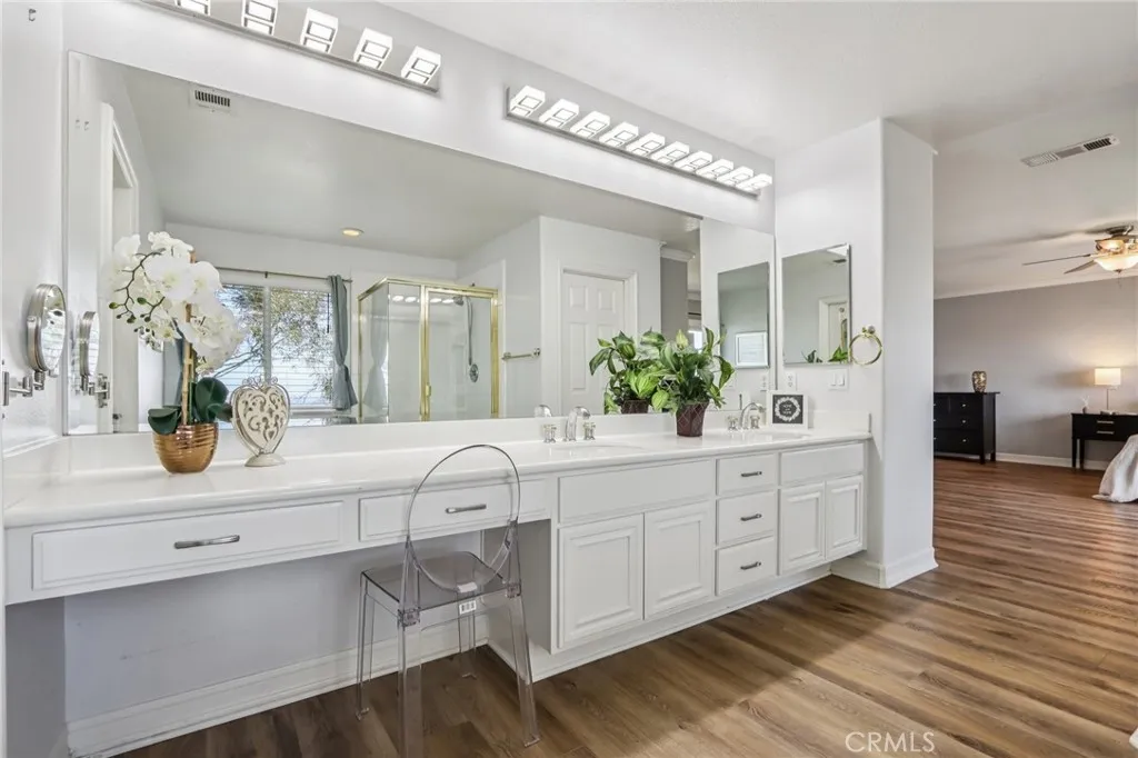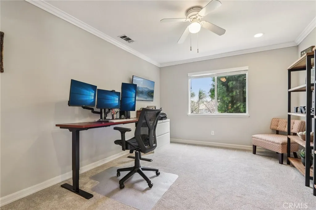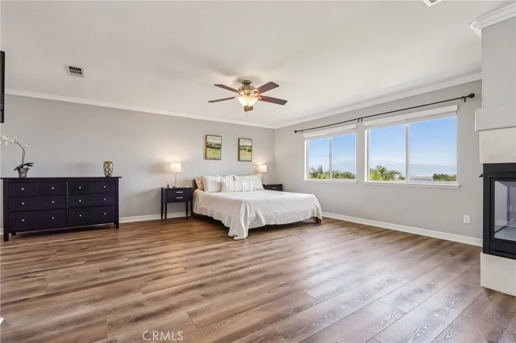 VIEWS | DOWNSTAIRS BEDROOM WITH ATTACHED FULL BATH | UPGRADED AND TURNKEY | Located on a quiet cul-de-sac with scenic mountain views, this turn-key home welcomes you with beautiful curb appeal and an open concept layout. Step inside to a spacious interior featuring upgraded flooring, custom moulding, and canned lighting throughout, creating a bright and polished atmosphere. Formal living and dining rooms offer defined spaces for gatherings and special occasions, while the main living area provides a comfortable setting for everyday living. The beautiful kitchen has been refreshed with upgraded countertops and offers a generous walk-in pantry with ample storage for everyday essentials. The open layout flows seamlessly into the family room, making it ideal for entertaining and staying connected with family and guests. The home offers a convenient downstairs bedroom with a full bathroom, perfect for guests or multi-generational living. Upstairs, the expansive primary suite provides a private retreat complete with a cozy fireplace and a separate sitting area. The primary bathroom features a relaxing Jacuzzi tub, dual vanities, and a spacious walk-in closet with custom built-in cabinetry. Additional guest bedrooms are generously sized, including one with a walk-in closet, and an upstairs linen closet provides convenient central storage. Practical features continue with a dedicated laundry room equipped with a sink, built-in cabinetry, and extra storage to keep everything organized. The three-car tandem garage offers flexible parking and storage options, while newer window blinds throughout the home add a clean, updated touch. Step outside to a backyard designed for enjoyment, featuring a play gym and plenty of space to relax or entertain while taking in the surrounding mountain views. Located in the highly sought-after Eisenhower School District, this home also offers the benefit of a low HOA with community amenities that include a pool and tot lot. Close to freeways, shopping, parks and hiking trails!