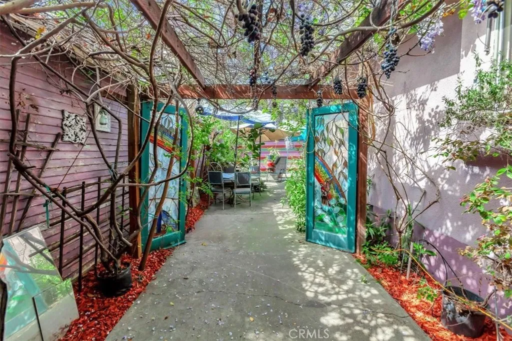 Welcome home to your own private oasis of tranquility in the historic neighborhood of Park Santiago! SINGLE STORY! Situated on a huge 8360 SF lot, this home has 3 bedrooms and 2 baths in 1615 SF of living space. Artistic and original, experience the vintage vibes as soon as you enter the property! Curated with bubbling fountains, artwork, mature trees that provide shade, fruit and flowers, there’s so much to enjoy in the abundant outdoor patio spaces and deck, offering peaceful and private spots to read, relax, entertain or just watch nature in your own slice of paradise. There’s plenty of parking and ample space to entertain in this well-planned landscape. This home welcomes you inside with abundant natural light, gorgeous original hardwood floors, custom plaster wall finishes, and many vintage details, along with views of the fully landscaped garden from every room. The living and dining room offer an elegant space to entertain and include a wood burning fireplace and built in cabinetry. A flexible space located adjacent to the living room offers many options for use including a TV/Den, Office, Study or Craft Area. The kitchen and adjacent breakfast nook retain their original cabinetry and tile, adding a charming and cozy spot to cook and enjoy meals. The conveniently located rear “mud room” leads to the back yard and is outfitted with an extra deep set-tub style sink, washer and dryer space and storage cabinets. Two secondary bedrooms share a full bath, and offer plentiful storage in their original built-in closets. The primary suite is a true sanctuary with an attached bath, built in closets and beautiful views to the outdoors without sacrificing privacy. A private door leads outside to the covered patio and easy access to an authentic cedar hot tub located in a quiet private area of the back yard. Centrally located in one of Orange County’s most desirable communities, residents in historic Park Santiago enjoy a robust community spirit and is famous for its festive celebrations. Newly renovated 35-acre Santiago Park is walking distance and offers abundant outdoor activities and nearby downtown Santa Ana and Olde Towne Orange are close-by. Notable schools nearby include Orange County School of the Arts and Mater Dei. Transportation corridors also make this home convenient for travel outside of Orange County. Come see for yourself and be captivated by the magic of this special property, it is sure to please and won’t last long!