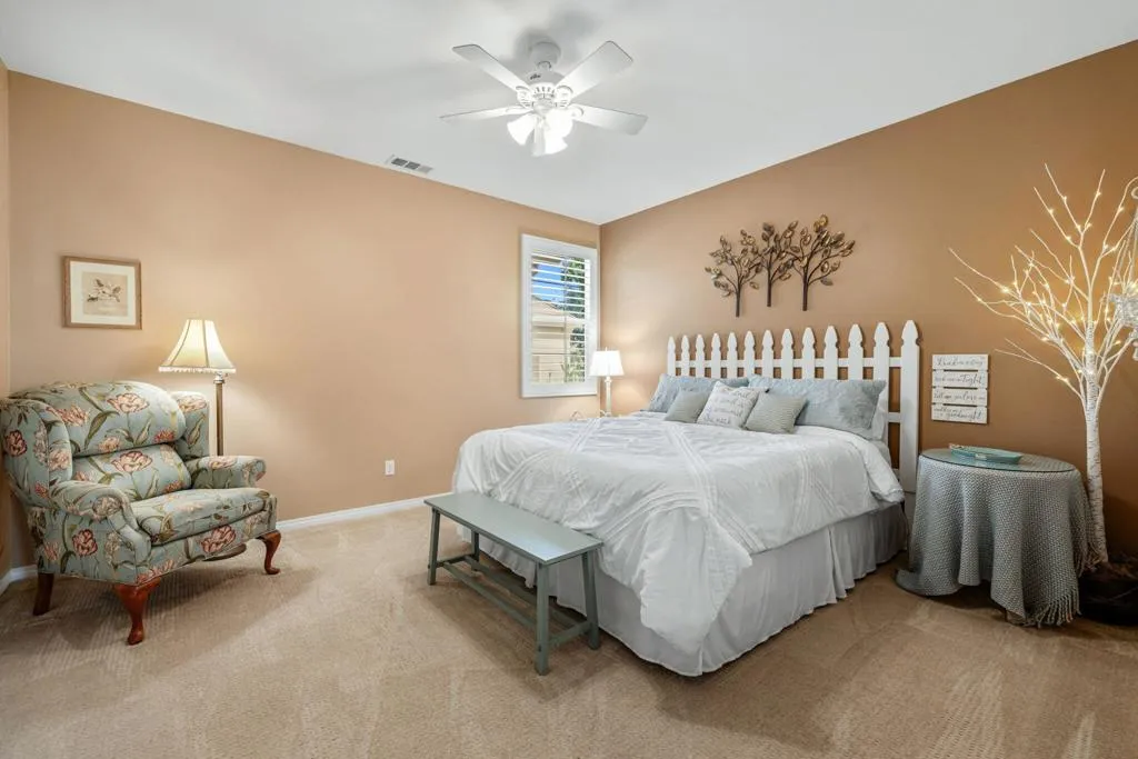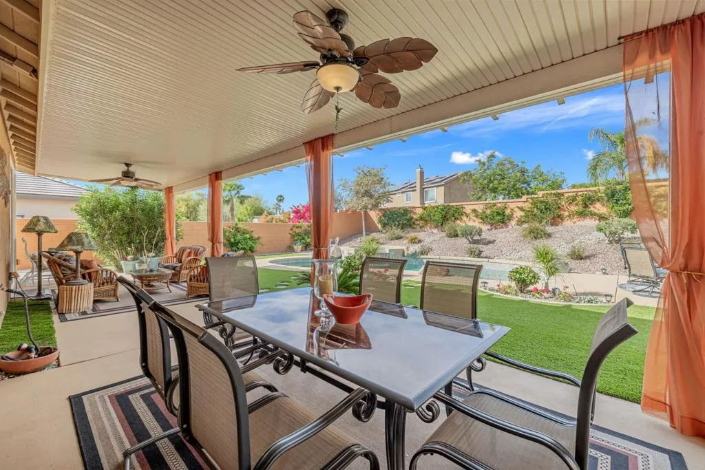 TRULY A MUST SEE! Nestled in the securely gated community of ALIANTE in North Indio, which is bustling with nearby shopping and dining, bordering Championship public golf courses, Terra Lago and Eagle Falls, and the Fantasy Springs Resort and Casino, with easy access to the I-10 freeway for convenient commuting.Within the gates of Aliante you will experience a community park with a playground, basketball courts, soccer field, barbecue grills for recreation surrounded by stunning mountain views plus low HOA fees.Step inside the charming designer door to an exquisite open concept living, dining and kitchen gathering area with cozy fireplace for entertaining family and friends with views of a backyard oasis with pool, spa and firepit for outdoor fun with multiple sitting areas....maintained impeccably!This 3 bedroom, 2 bath, plus an office/den, has a master suite with a large sitting area which can easily be converted back to a 4th bedroom. The 3 car epoxy floored garage can also be used as a exercise/flex/play room.The home is equipped with solar panels, low maintenance artificial turf, and exquisite landscaping with drip system and lighting front and back. The backyard patio has an alumawood patio cover and also a storage shed with a planting area.Come and see for yourself our comfortable and hard to describe home, so many extras included, and enjoy desert living under the stars!!!! FURNITURE NEGOTIABLE.