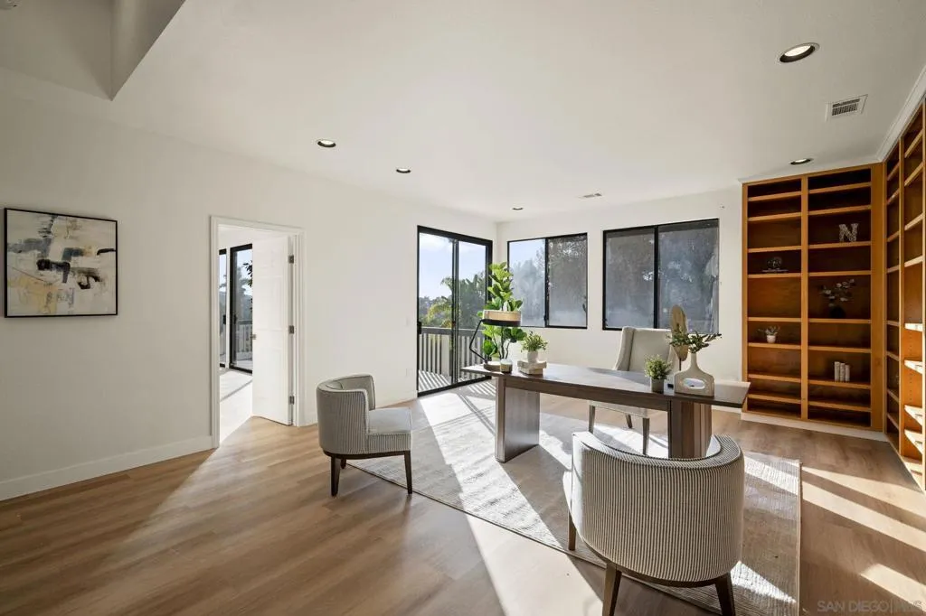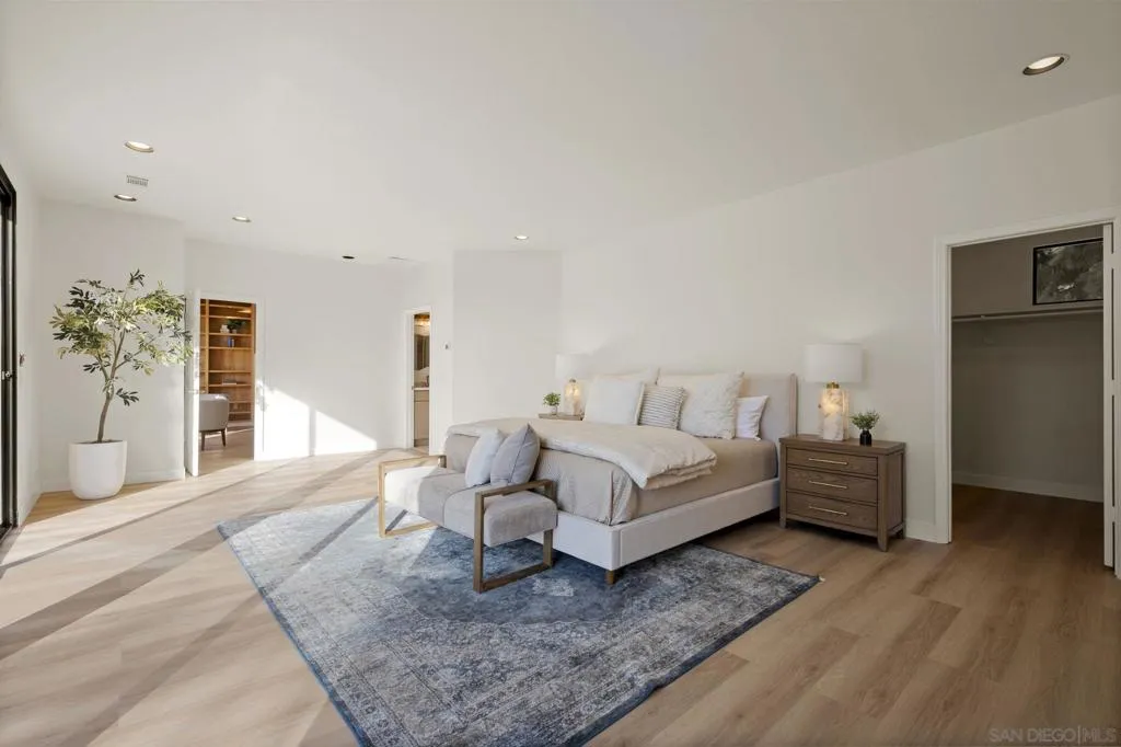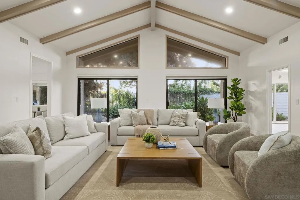 Completely renovated in 2026, this spacious residence offers 4 bedrooms plus an office and 3.5 bathrooms, blending refined design with timeless architectural character. Soaring vaulted ceilings and expansive windows fill the home with natural light, enhancing the open and inviting living spaces. Elegant finishes, luxury flooring, and a statement fireplace create a warm yet sophisticated environment ideal for both everyday living and entertaining. The entire upper level is the primary suite, a private retreat, featuring a balcony overlooking the golf course — the perfect place to unwind with a glass of wine while enjoying sunset views and even fireworks on the Fourth of July. Three additional generously sized bedrooms downstairs provide flexible space for work, guests, or growing households. Designed for seamless indoor-outdoor living, the backyard offers a resort-style setting with a sparkling pool and spa set against the tranquil golf course backdrop. The outdoor entertaining area is complete with a built-in kitchen including BBQ and bar seating, plus an inviting outdoor fireplace, creating an ideal setting for gatherings year-round. Set on a generous lot with potential for expansion or an ADU, this exceptional property combines space, privacy, and lifestyle. Located just minutes from top-rated schools, beaches, shopping, dining, and the world-class Omni La Costa Resort & Spa, this is a rare opportunity to own a turnkey golf course home in one of North County’s most desirable communities.
